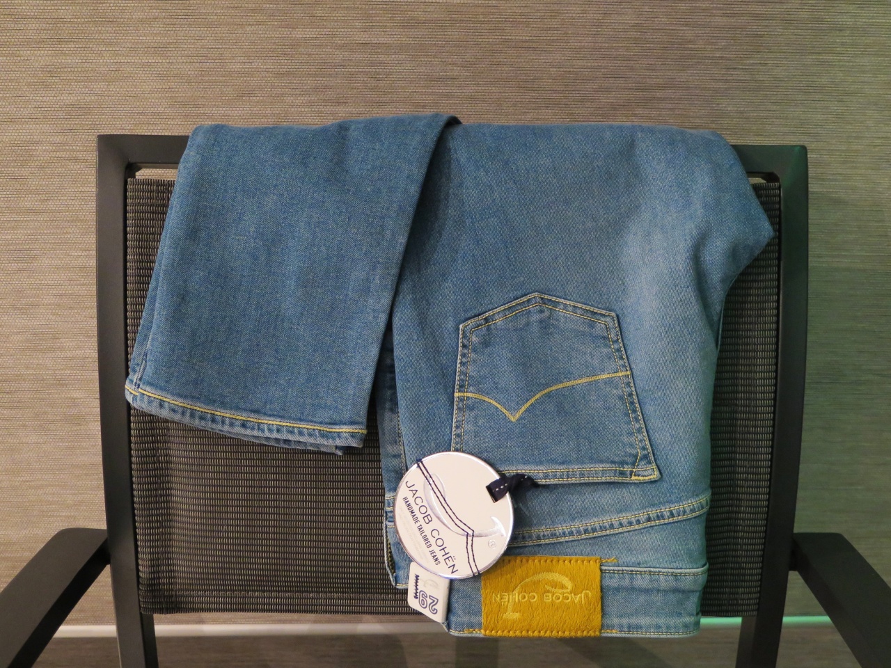 Модель: 713, прямого кроя, застёгивается на фирменную пуговицу с логотипом Jасоb Соhеn и молнию.
