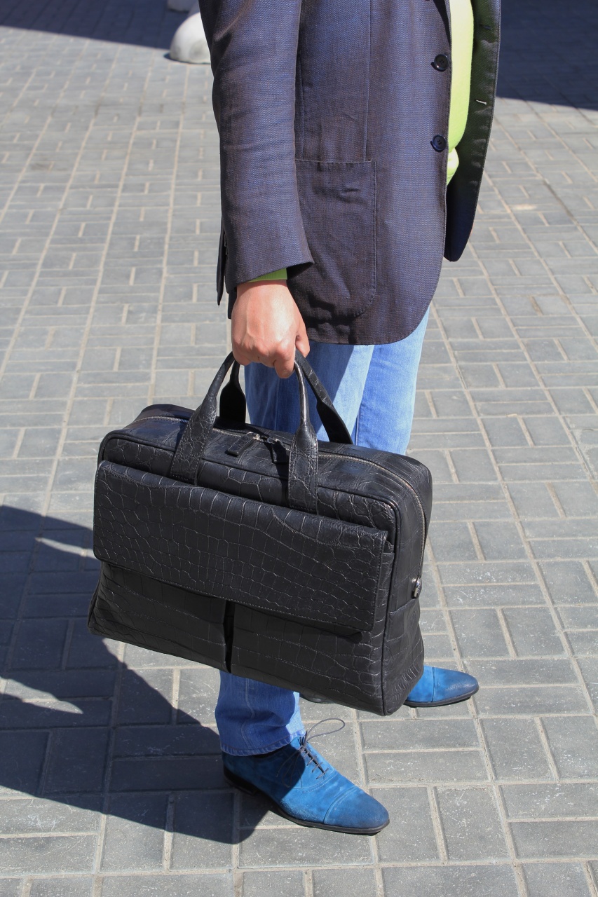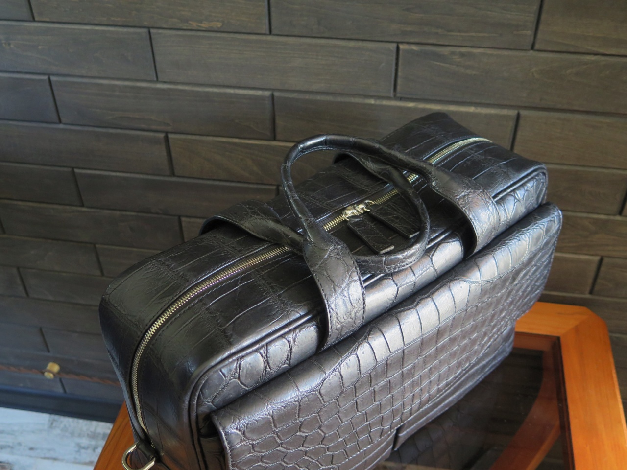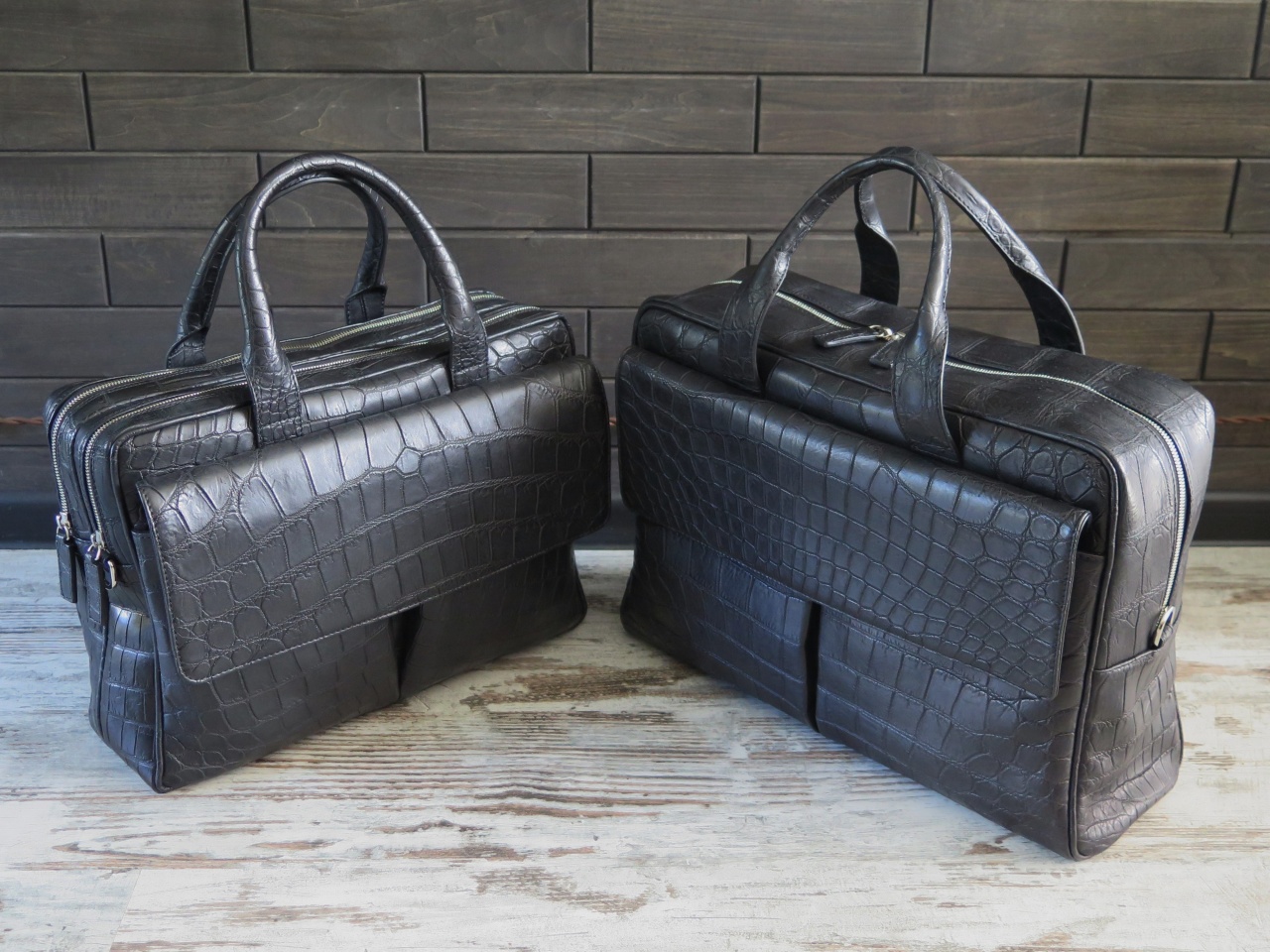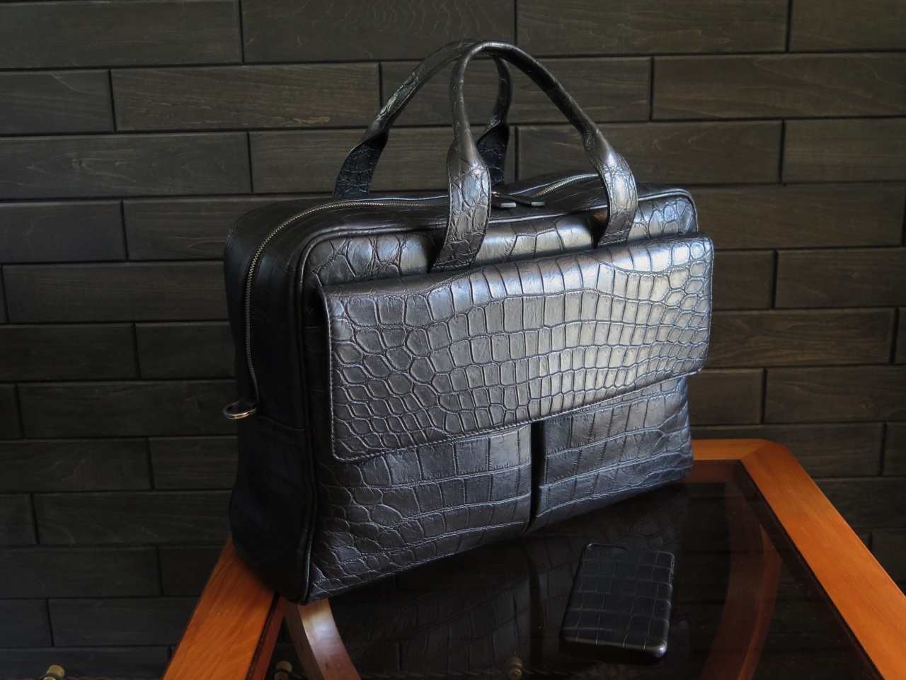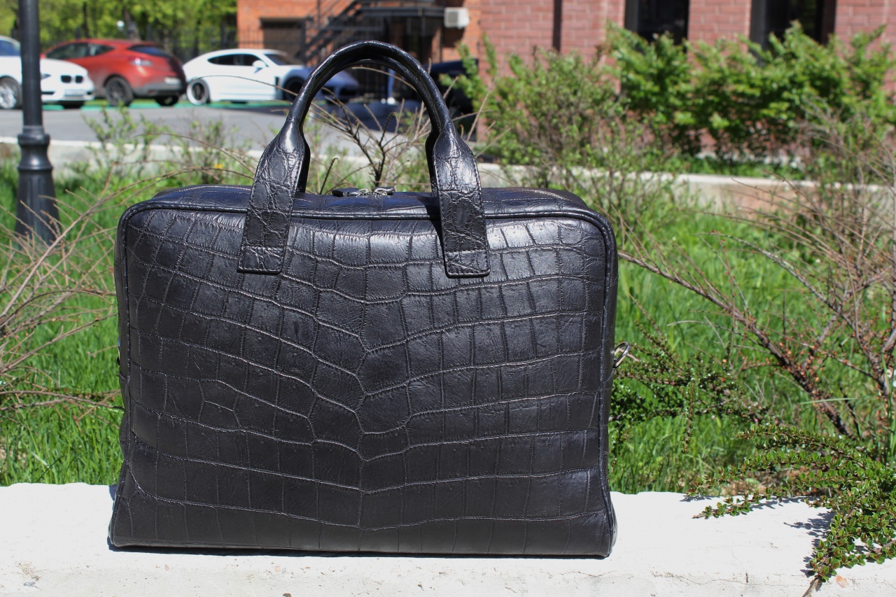 "ТЯЖЕЛЫЙ ЛЮКС", мужская сумка-портфель, черный крокодил. Италия