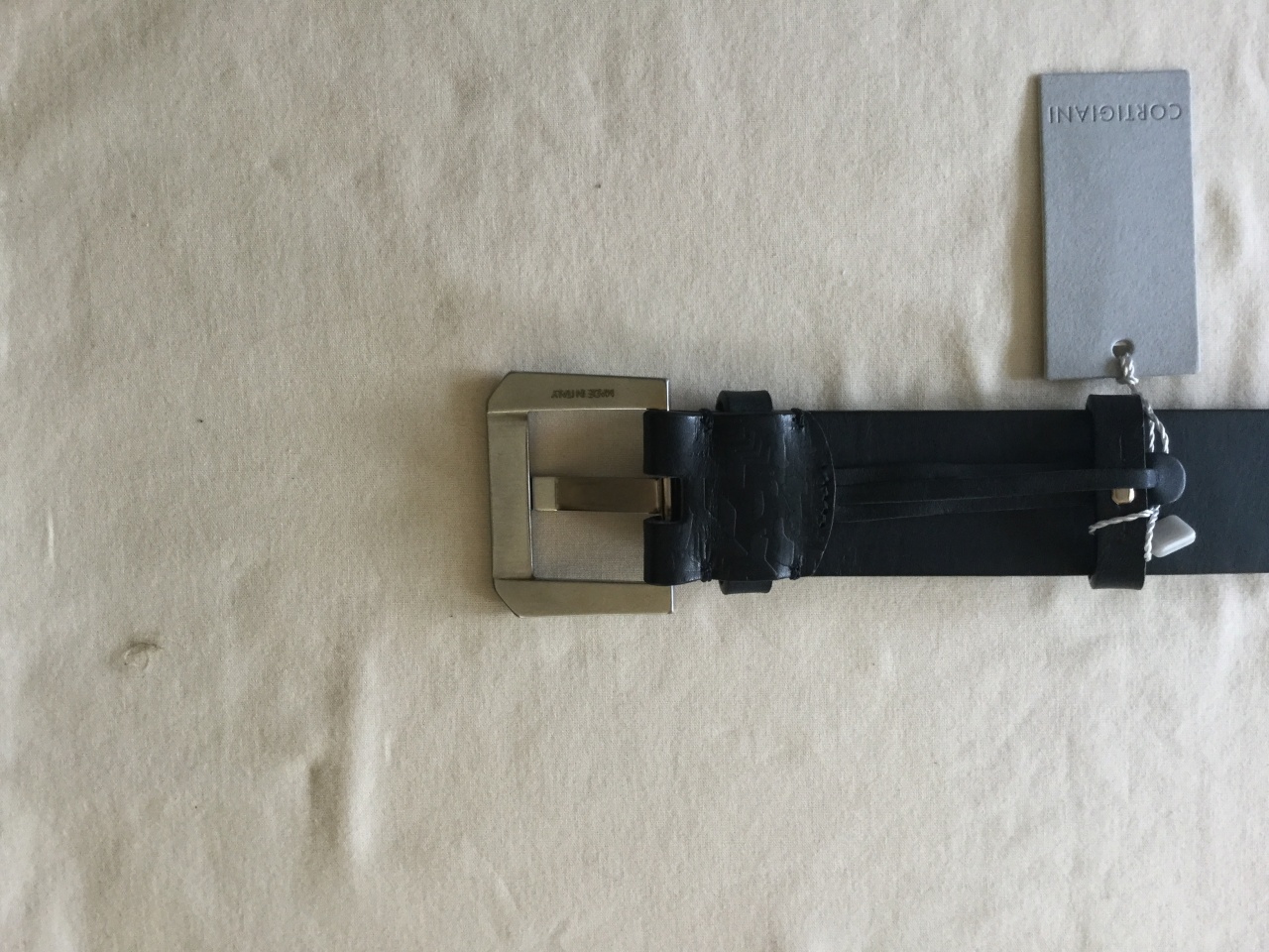 CORTIGIANI.Лицевая сторона имеет фирменное тиснение,Тяжелая пряжка с логотипом бренда,размер 115см.,Ширина ремня 4см.Проиводство Италия.