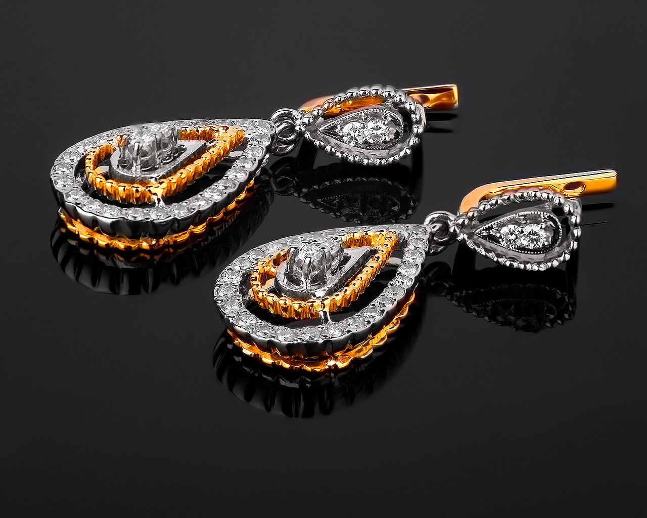 Прекрасные золотые серьги с бриллиантами 1.24ct