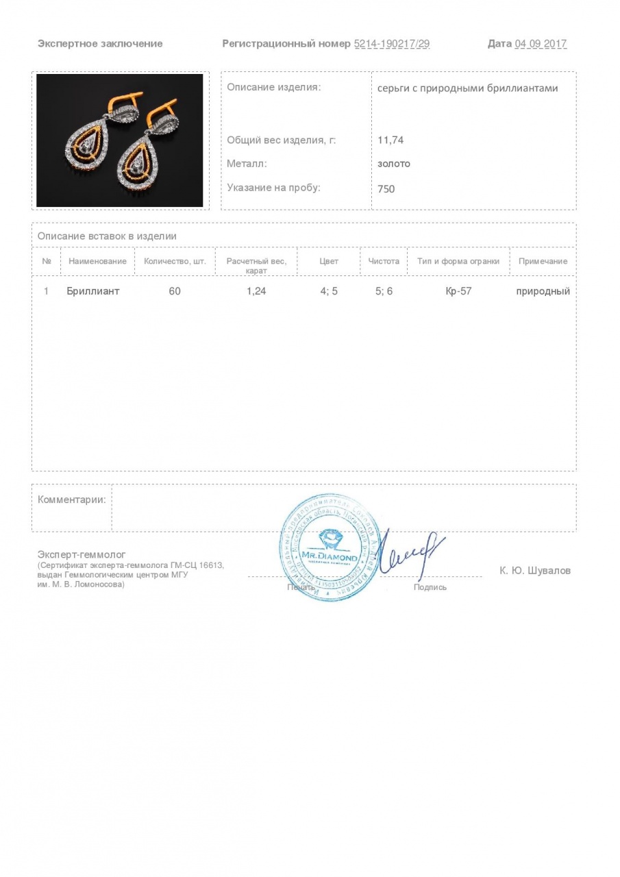 | бриллиантовые серьги, золотые серьги, серьги с бриллиантами 1.24ct |