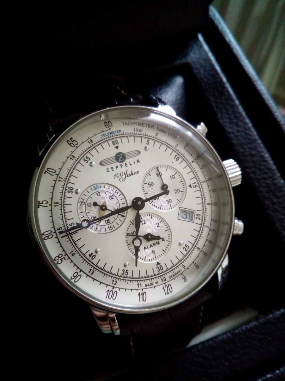 Привезены из Германии в качестве подарка. Носил один осенний сезон. Все остальное время лежали в коробке, (два раза доставал только для замены батарейки) так как тонкая кисть, да и не мой стиль часов. Внешне состояние видно по фото. Единственный минус было падение на ковер с метровой высоты и отклеилась риска на циферблате. Если очень хорошо присмотреться, то можно заметить. В остальном проблем нет. Документы и коробка в комплекте. В приоритете продажа, но так же возможен и обмен на винтажный проигрыватель виниловых дисков.