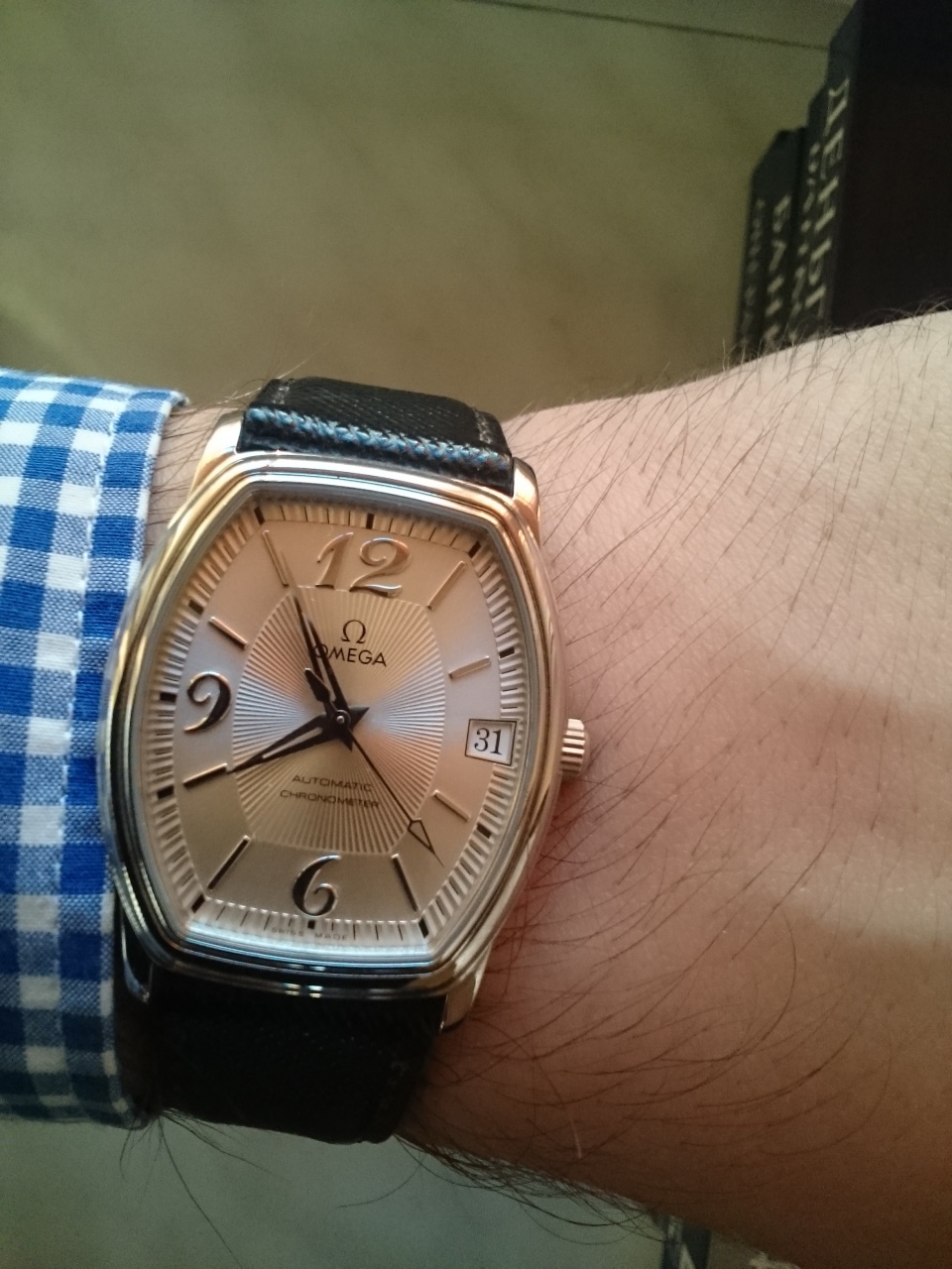 Продаю мужские наручные часы Omega De Ville Prestige хронометр (реф. 4803.31.02). Классические механические часы с системой автоматического подзавода, 23 камня, калибр 1120. Корпус выполнен из нержавеющей стали, циферблат серебристый с датой. Сапфировое стекло с антибликовым покрытием, твердостью 2200-2300 по Викерсу. Водозащита 30 WR.