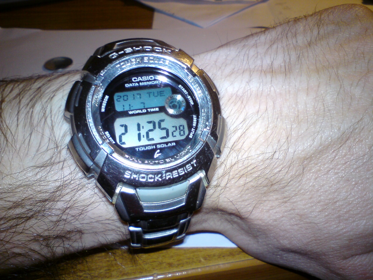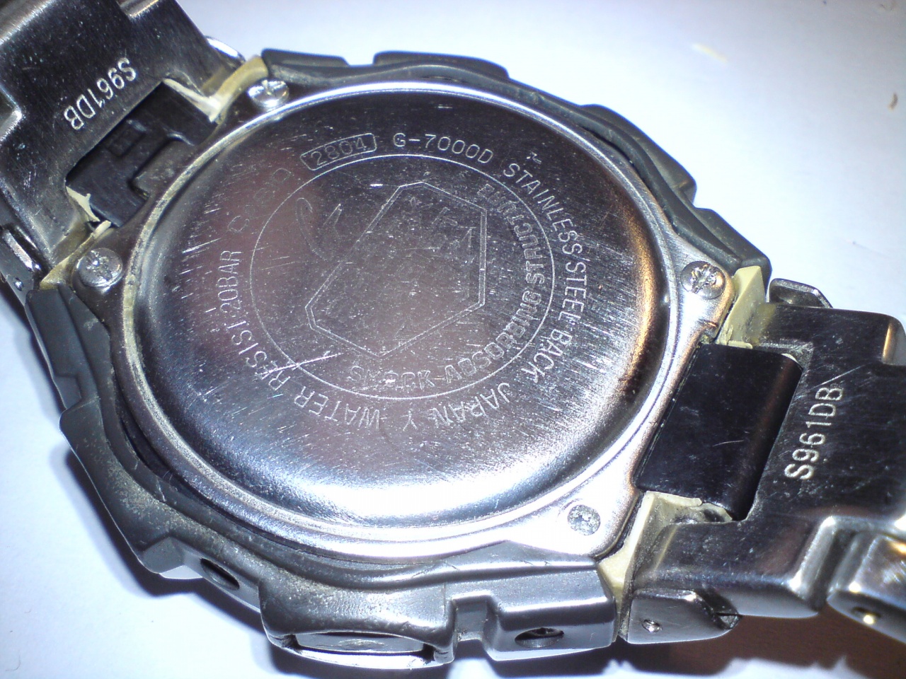 Продам часы Casio G-shock G-7000D, модуль 2804. Куплены в декабре 2003 г. Эксплуатировались на всю катушку. В 2009 был заменен аккумулятор и прокладка под крышку. В октябре 2011 сломалось промежуточное звено крепления браслета к корпусу. Переделал крепления. В 2012 стали протекать, перестал их носить. Часы просто лежали на столе. Впоследствии обнаружил, что под винтиками, крепящими заднюю крышку, развалилась резьба, крышка плохо прилегает к корпусу. Вероятно, есть ещё повреждения.