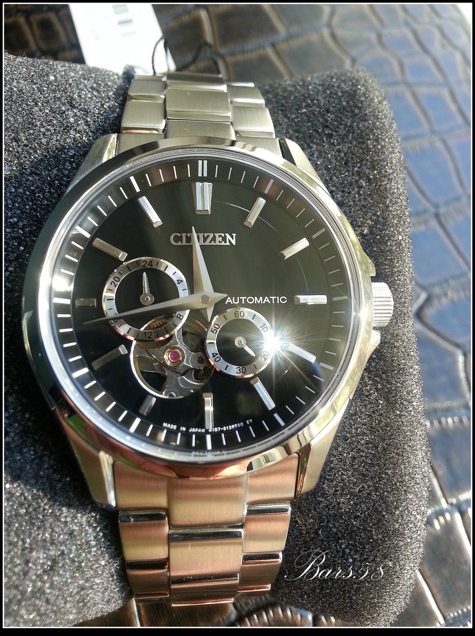 По-настоящему очень интересные и красивые механические часы японской сборки, в дизайне "бессмертной классики", с открытым балансом (фигурный проём сделанный в циферблате, позволяет заглянуть в самое сердце часового механизма) и прозрачной задней крышкой.