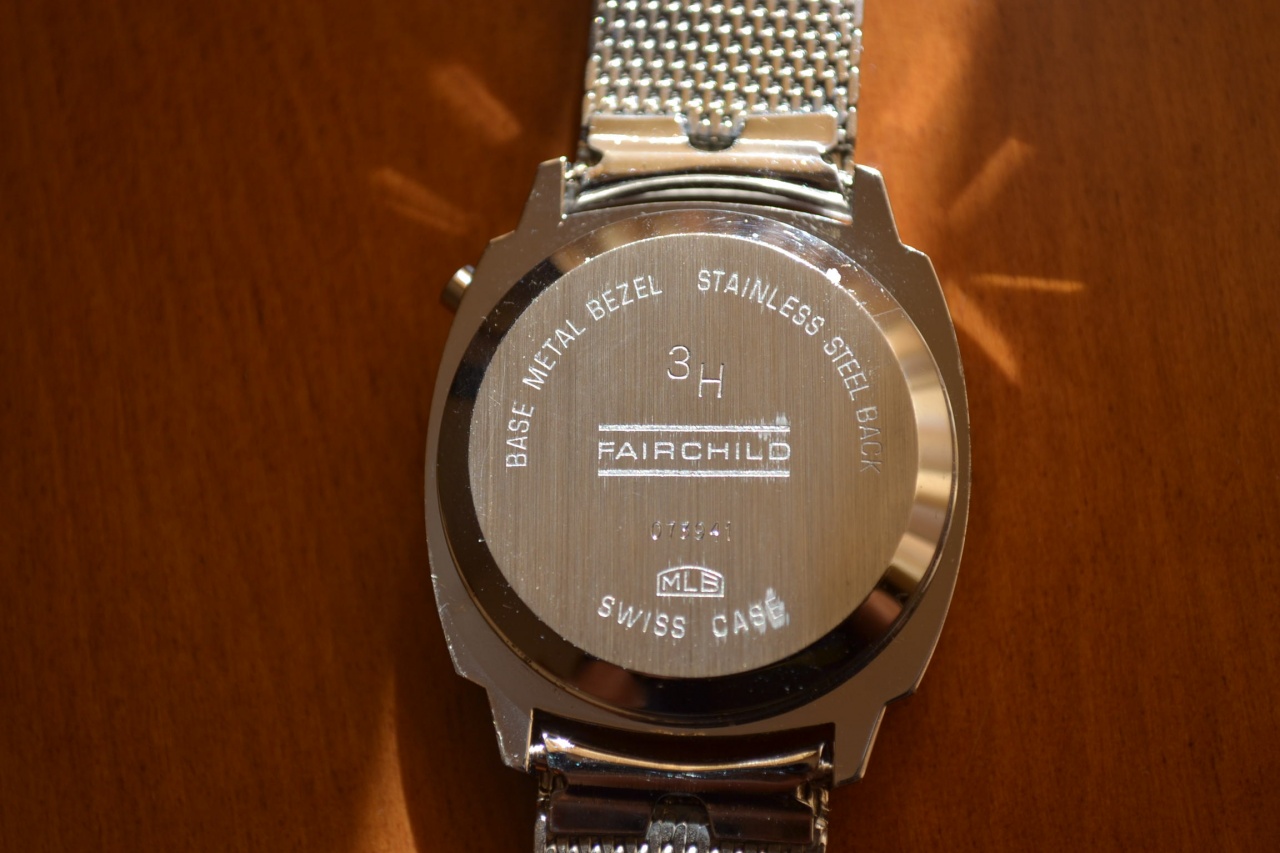 Абсолютно новые мужские винтажные часы в отличном состоянии FAIRCHILD. Оригинальные часы, коробка, документ, ремешок. Минималистичный дизайн, потрясающее сочетание стального и черного цвета. Среди электронных часов FAIRCHILD самый красивый корпус. Часы изготовлены, ориентировочно, в 1977-1979 гг. Батарейка новая, вставлена в США. Артикул FC1347, серийный номер 073941. Подсветки нет, измерение времени только в 12-ти часовом формате, отображают еще дату, месяц и день недели (на английском); остальное – стекло, скорее всего, обычное; крышка - нержавеющая сталь; корпус – не известно; водопроницаемости, думаю, нет. Отлично работают, несмотря на возраст. Элемент питания – 393. Ремешок ширина 17 мм. Размеры 32*10*40 мм. Вес с ремешком 61 г. Предпочтительна личная встреча в Москве.