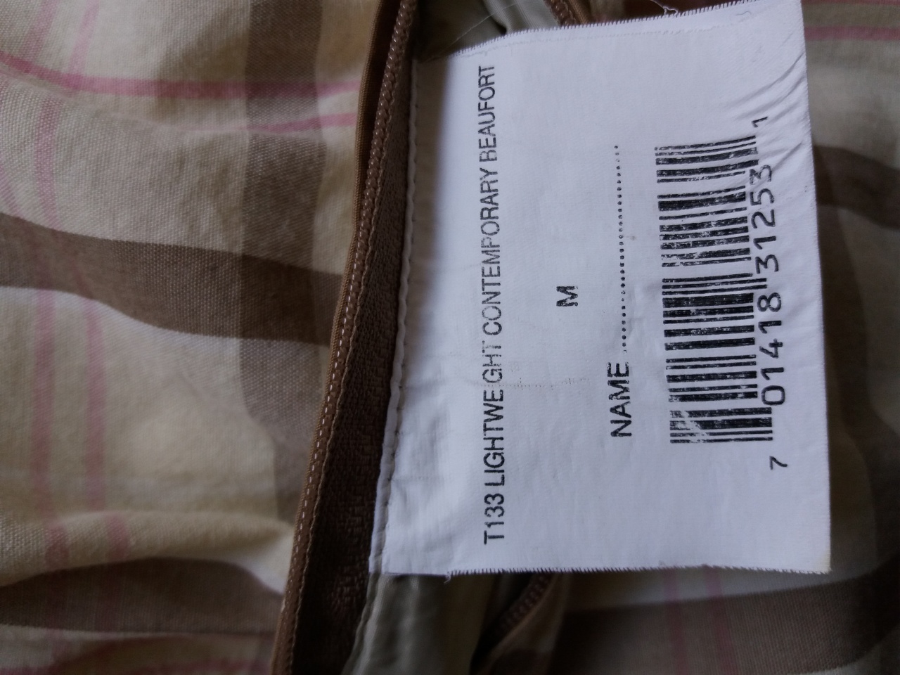 Куплена в Шэнноне в прошлом году в магазинчике Barbour, один раз прополоскал в стиралке на бережном режиме (был небольшой еле уловимый запах какой-то отдушки, видимо долго висела в магазине рядом с другим барбурами - после полоскания исчезнувший).