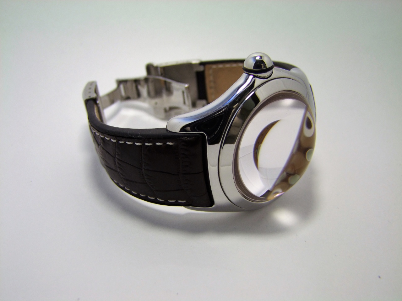 Ремешок оригинальный, на нем в 2016 г. заменена "родная" кожа на внешней части на коричневого крокодила и на внутренней части на теленка.