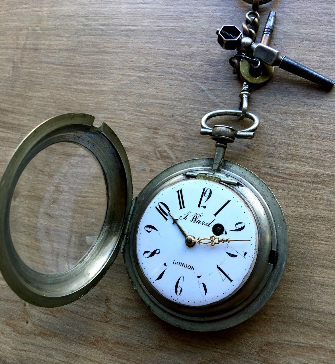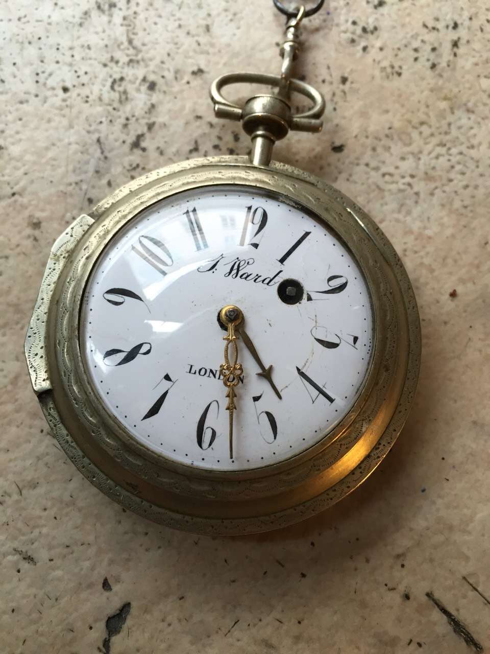 Походу цепь с историей уцелела как единое целое с часами) Корпус и механизм чисто европейской школы корпус французский ввнутри должно быть клеймо его надо сфоткать для ясности и отбросить все сомнения а так... мастер часов хитрожопый еврей сруливший в Англию во время французской революции - часы как раз того периода! - спасая свою драгоценную шкуру вместе с семьей и пожитками прибыл в Англию и продолжил свое славное дело добавив с чувством глубокого удовлетворения на циферблат гордую надпись Лондон ниже своего имени поскольку в то время лучшими часами все таки считались английские имевшие в то время кучу нововведений и патентов.