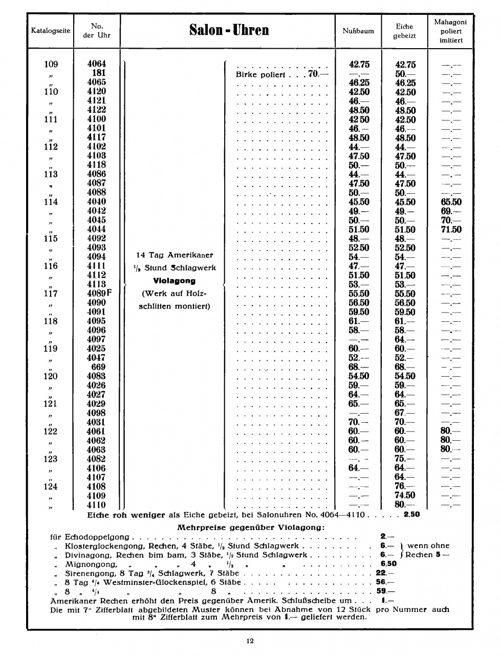 ПРейскурант к каталогу "Mauthe" за 1924 год