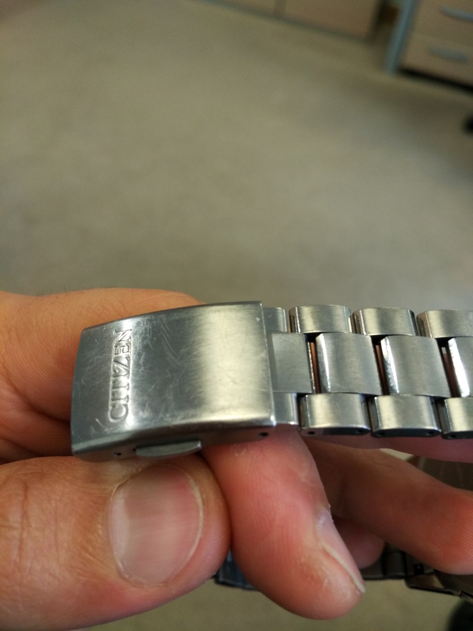 Браслет часов четко дает понять, что часы использовались «и в хвост и в гриву» (что очень жаль). От сильных затертостей застежки ни спас никакой Duratect. Большая часть звеньев браслета также имеют отчетливо видимые места постоянного контакта с элементами внешнего мира