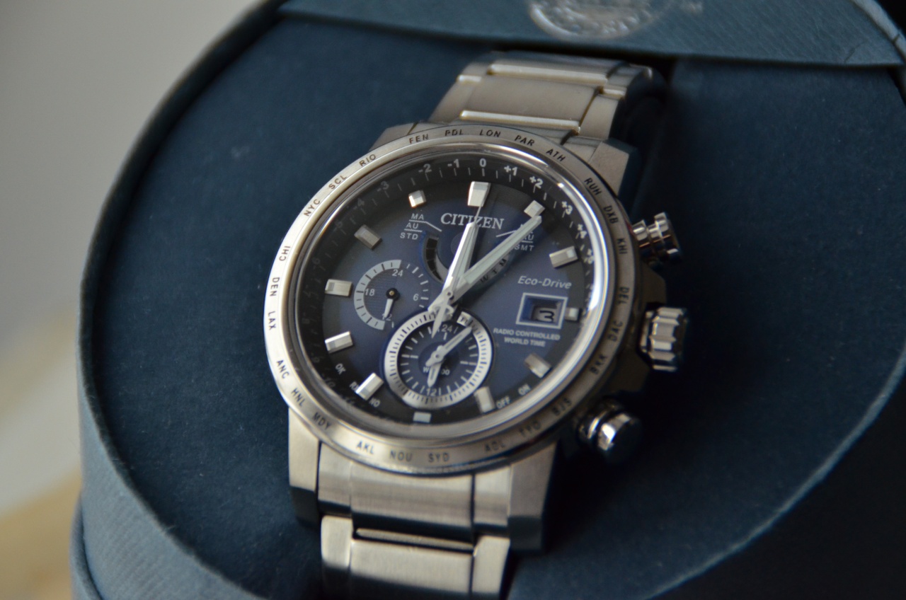 Итак, часы попали ко мне из США без коробок, документов и покупая их, мне просто хотелось понять и почувствовать что такое Attesa от Citizen. Часы на довольно популярном калибре H820, Duratect, радиосинхра, титан, Made in Japan. Судя по серийному номеру (начинающемуся с 451….) часы произведены в 2014 году, то есть довольно молодые