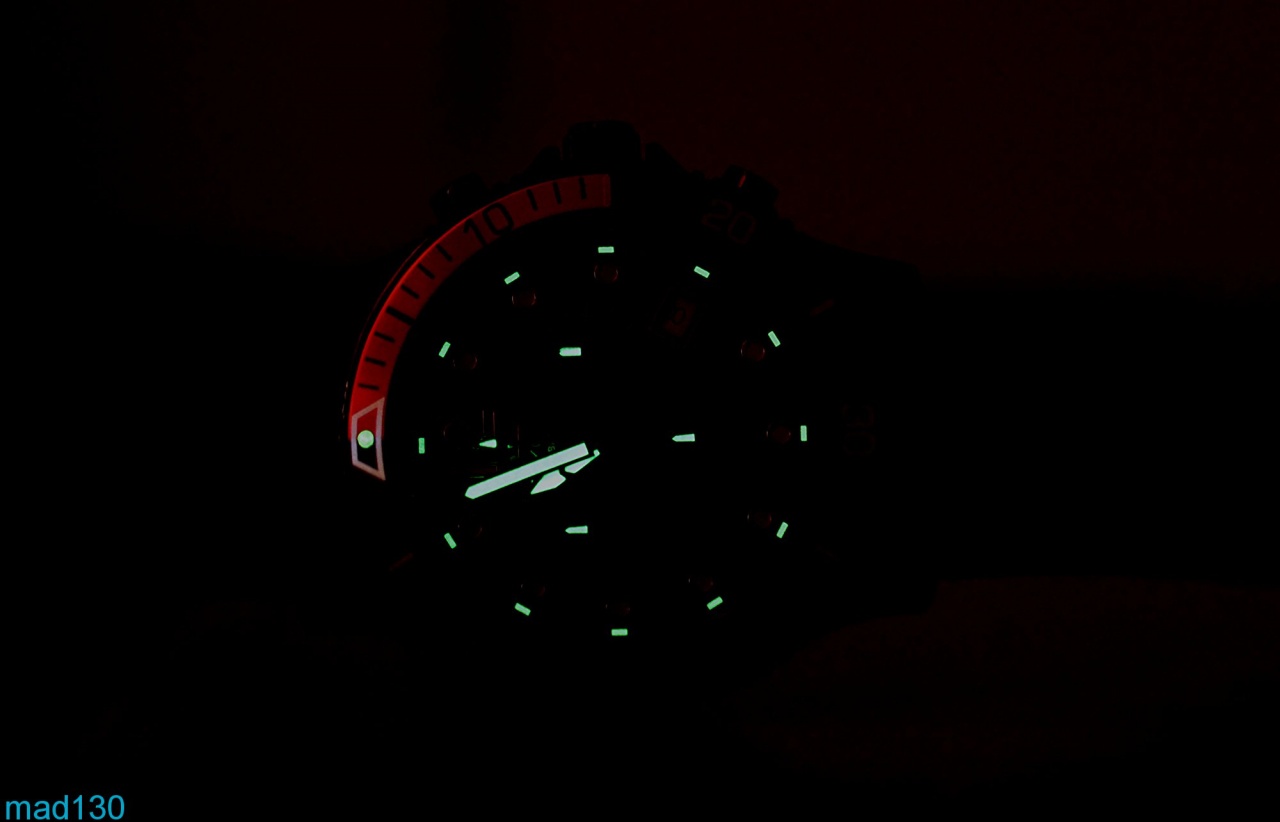 Ночная подсветка стрелок и меток яркая.