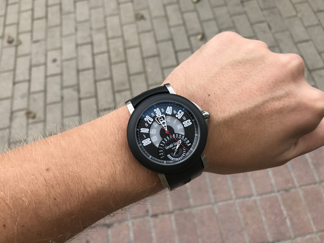 Gerald Genta Arena BiRetro ( Двойной ретроград, Каучук , Мануфактура )