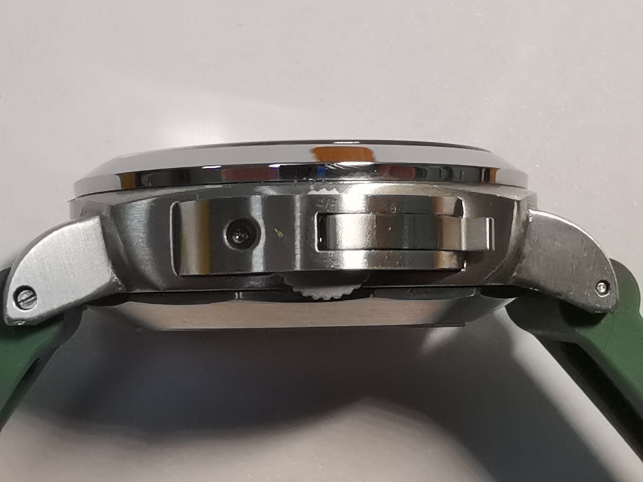 Дома, вскрыв упаковку я обнаружил, собственно часы в пакетике, и приложенный маленький пакетик со шпильками для ремешка. Внешний вид часов меня несколько огорчил, а именно обработка корпуса, особенно с нижней стороны и по боковым кромкам. Такое ощущение, что после нескольких этапов формования, корпус едва приложили к шлифовальной поверхности,- и так сойдёт! С расстояния в 20 см, все недостатки видны отчётливо! Чуть лучше обработана запорная скоба, хотя рычаг с внутренней стороны не имеет попыток обработки. Ну, думаю надо и на ремешке посмотреть, авось лучше будет. Не тут то было – оказалось, что одна из шпилек с резьбой, другая без резьбы, то есть разных типов. Продавец не внимательно скомплектовал заказ, и мне пришлось положить часы в ящик для наблюдений, не имея возможности посадить их на ремешок. С первыми впечатлениями о часах я обратился к продавцу, и он мне предложил выслать шпильку, но для этого, с его слов, мне нужно было выбрать на странице магазина какую-то ссылку и как бы купить её. Перерыв весь магазин я ссылку не нашёл, о чём уведомил продавца. Оказалось, мы используем разные версии приложения и мне увидеть эту ссылку просто невозможно. Неделя попыток выловить ссылку прошла впустую, и я решил сам заказать шпильки в другом магазине, что и сделал. Тем временем мои наблюдения за часами заставили меня насторожиться и даже огорчиться. В часах установлен механизм ST2557, внешне довольно симпатичный с приятной обработкой, по стоимости он примерно соответствует NH35a, иногда слегка дороже. На второй неделе наблюдений я заметил, что часы останавливаются, иногда отработав 3 часа после полноценного завода в 40 оборотов. Я описал проблему продавцу, и получил ответ - «эти часы предназначены для ношения на руке и они автоматически подзаводятся». Я ему объяснил, что не ношу на руке по той причине, что не могу установить ремешок без шпилек. Взамен получил очередное предложение выслать мне шпильки, если что-нибудь куплю в его магазине. Когда, наконец, я получил шпильки из другого магазина, установил ремешок, и стал носить часы на руке, то существенно ничего не изменилось. Отправлять часы обратно смысла никакого не было, почта повысив расценки на международные отправления сделала это мероприятие экономически невыгодным. В конце концов, пришлось решать задачу самостоятельно. Открутив заднюю крышку и освободив механизм, я понял, разглядывая его со всех сторон, что скорее всего причиной остановки была секундная стрелка, которая при взгляде сбоку прикасалась кончиком к циферблату. Вооружившись пинцетом я, как мне показалось, слегка отогнул стрелку от плоскости циферблата. На этом, думаю, мои приключения закончились, и стал собирать часы. Основной проблемой оказалось установить ровно фиксирующее металлическое кольцо. Оно должно (как мне кажется) ровно выставлять циферблат и механизм, при этом поддерживая его. Однако всё не так просто,- то ли кольцо предназначается для другого механизма, то ли оно изготовлено с ненадлежащим качеством, то ли и то и другое, но ровно оно не выставляется, так как постоянно елозит между стенками корпуса и телом механизма, как две не совпадающие диаметрами детали, но установить его возможно только в одном положении – при совпадении соответствующих выступов и полостей. Это металлическое кольцо крепится внутри корпуса трем
