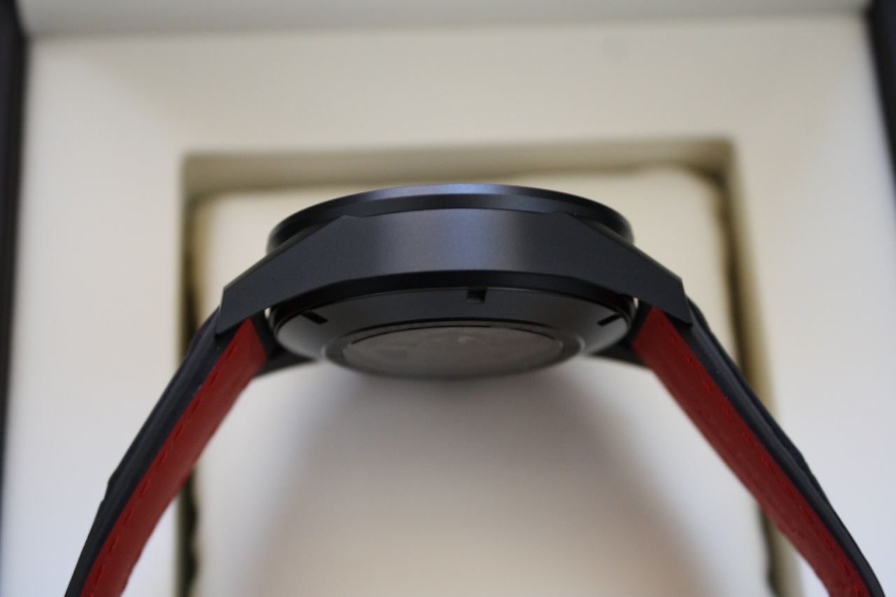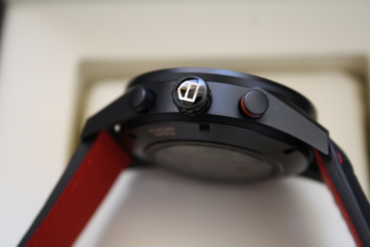Крепление: ремешок high-tech из кожи аллигатора Soft touch, прошитый красной нитью с красной подкладкой