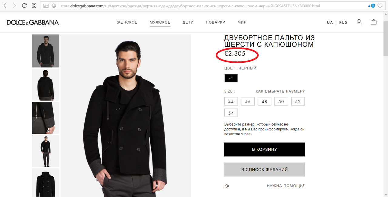 представительствах Dolce & Gabbana за эту сумму даже обычные джинсы трудно