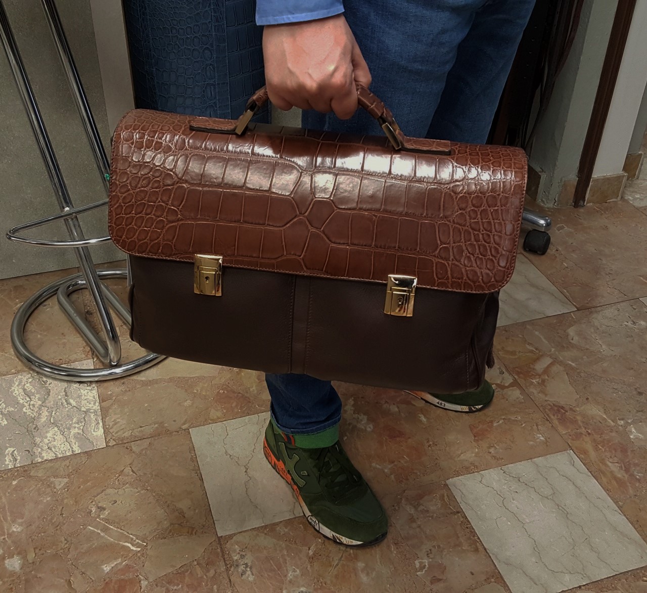 Продаётся шикарный новый мужской портфель из кожи оленя и нильского крокодила. СУПЕР ЦЕНА!