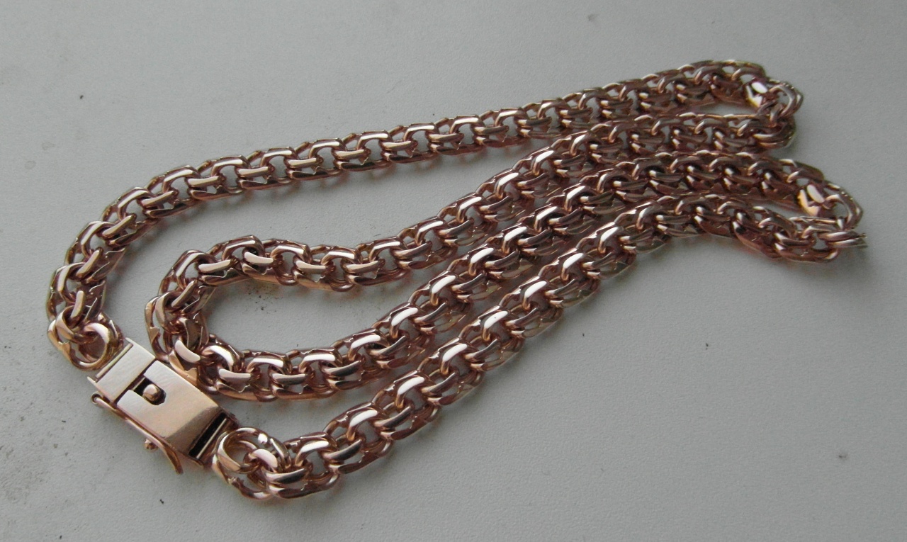 К продаже представлена массивная мужская цепь, плетение бисмарк, качественно сделана, запилена со всех сторон, прокатка канта до глянца (ровненький не видно даже пайки с краю), замок коробка на штифтах, удобный и практичный, не "дыбится" на шее и легко гнется в обе стороны, что удобно и практично+эстетично смотрится визуально, проба 585 кокошник (РФ), вес 88.57 гр., толщина 4 мм., ширина 8.8 мм, длина 61 см.