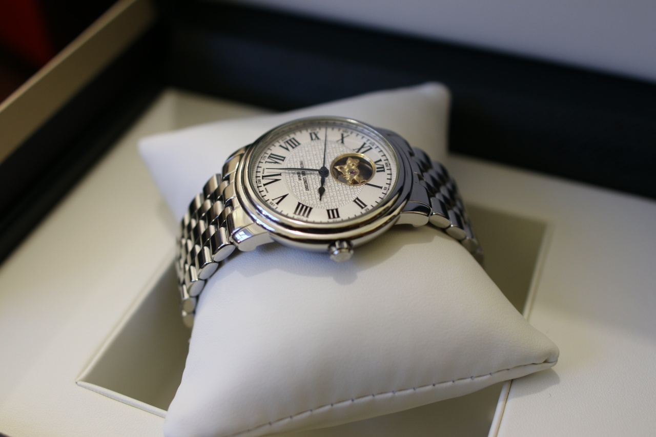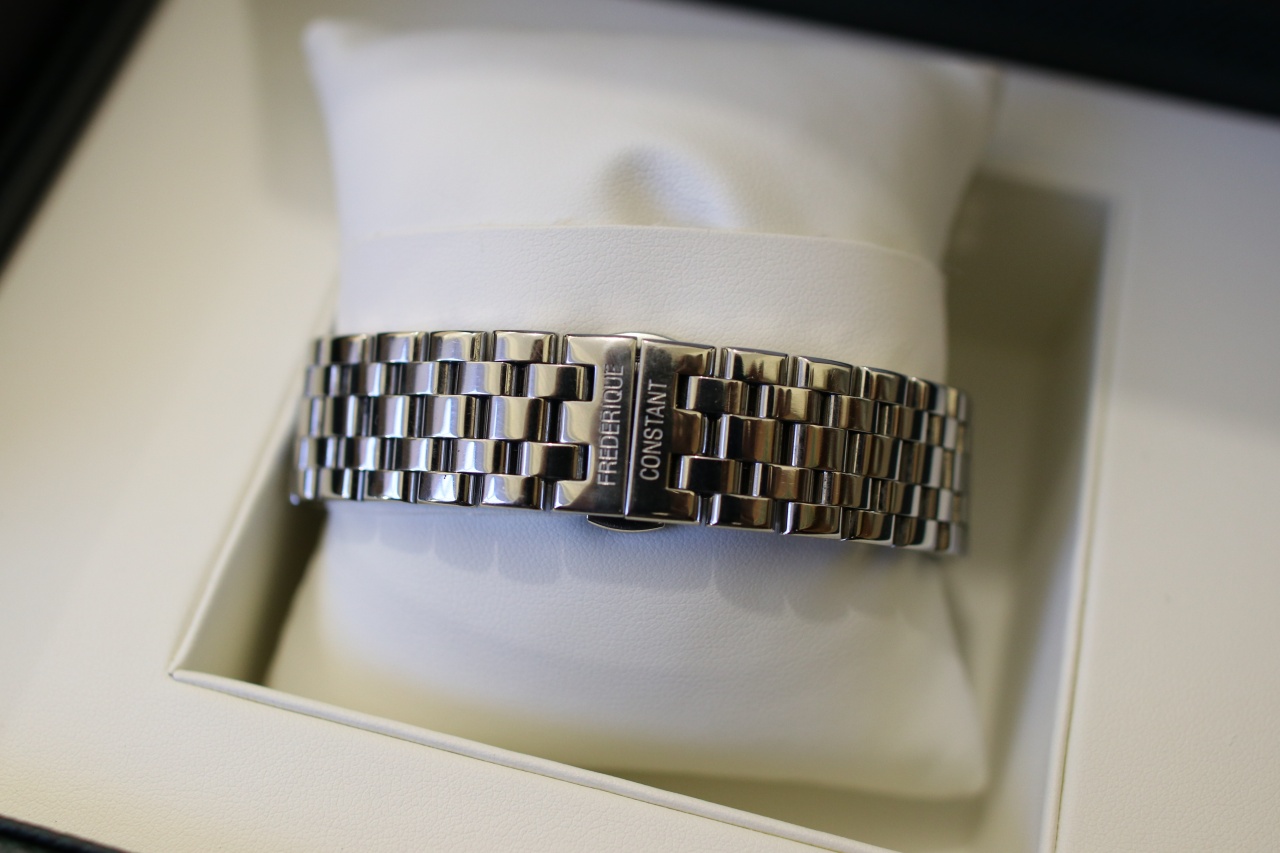Отличный на каждый день Frederique Constant! Следы носки еле заметны! Браслет длинный ( ~ 21 см ) Полный комплект документов! Очень красивое открытое сердце и гильоше на циферблате!