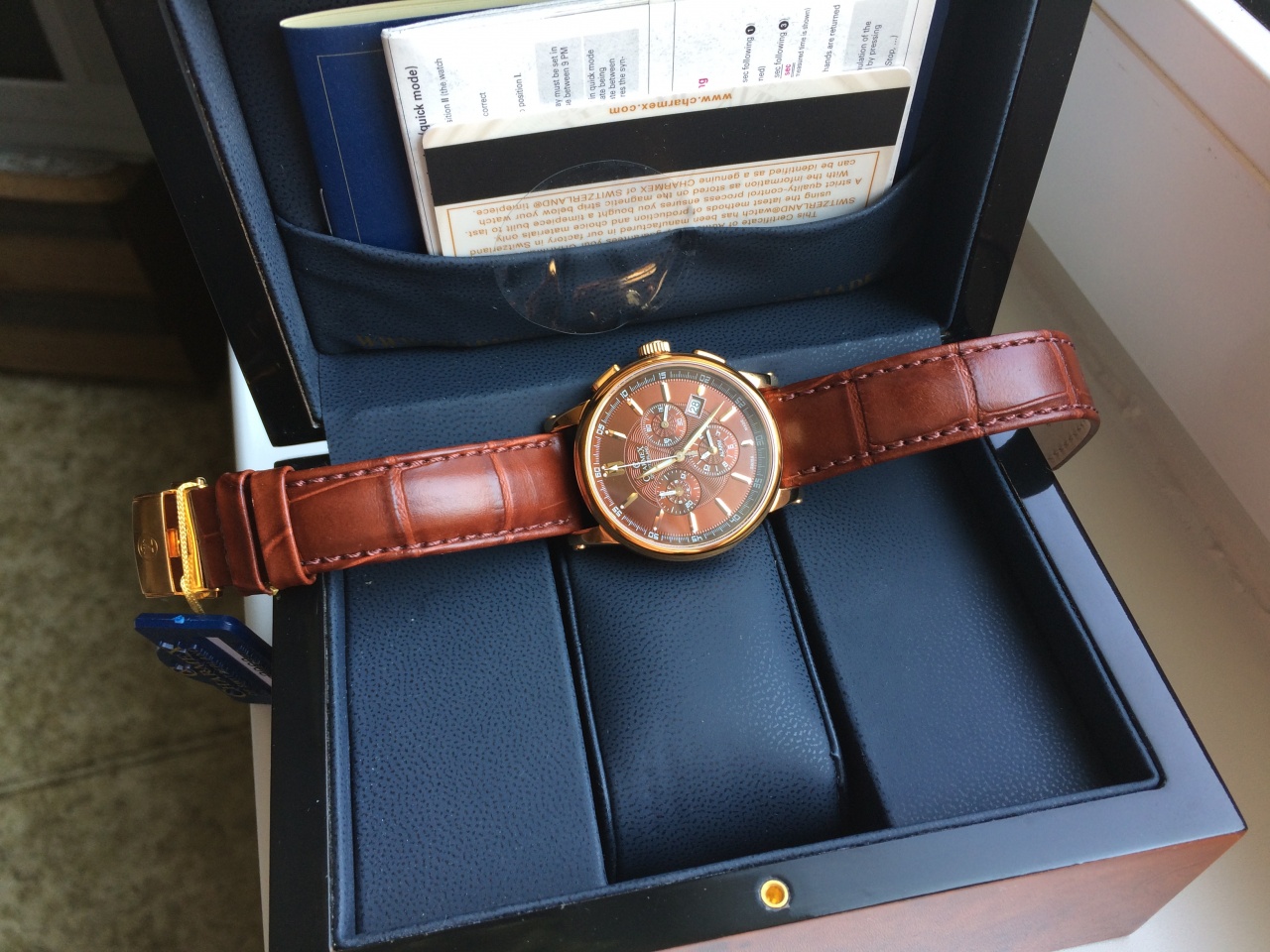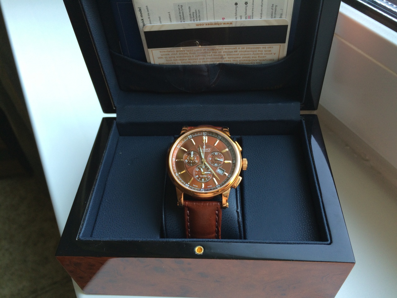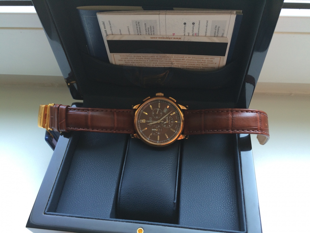 Кварцевый хронограф с устройством будильника. Механизм RONDA калибр 5130.D (Startech. На 13 камнях.). Секундная стрелка смещена на маленький циферблат (в 2-3 часа). Дополнительные циферблаты: накопитель в общей сложности на 12 часов (положение 9-10 часов) используется 2 стрелки часовая и минутная с шкалой 30 минут, время срабатывания будильника (положение 6 часов). Секундомер с режимами ADD и SPLIT. Аппертура даты. Срок службы батареи 48 месяцев.