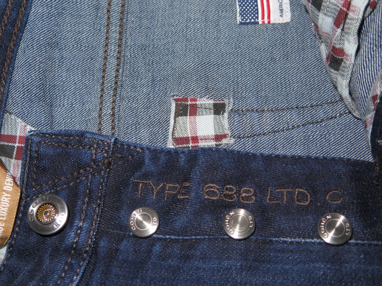 Сзади на правом бедре джинсы имеют фирменный ярлык из кожи пони черного цвета с логотипом марки Jасоb Соhеn, выполненный из металла, что указывает на принадлежность к "лимитированной" линейке марки и порядковый номер - 001!!!