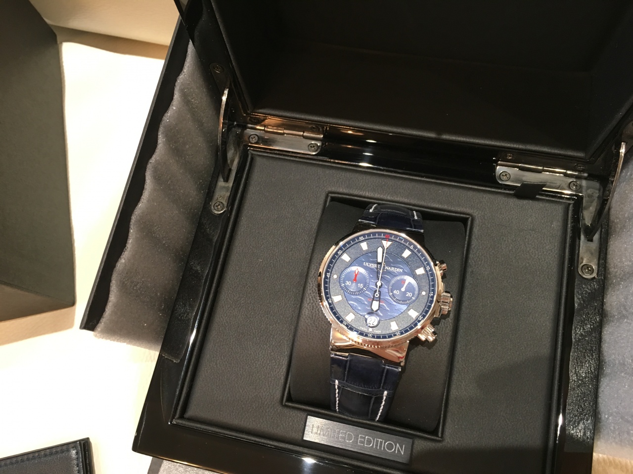 Редкие часы Ulysse Nardin Maxi Marine Chronograph Blue Seal, Ref.: 353-68LE из лимитированной серии. Всего 1846 экземпляров в мире.