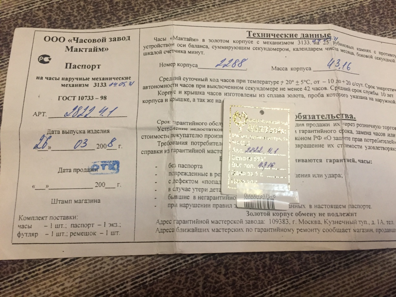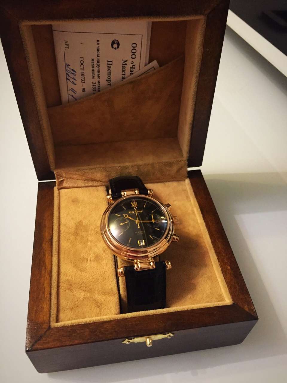 Продам золотые часы Maktime 2822.4.1, с чёрным циферблатом (крайне малое количество именно с чёрным циферблатом), покупались в фирменном магазине "Эстет".