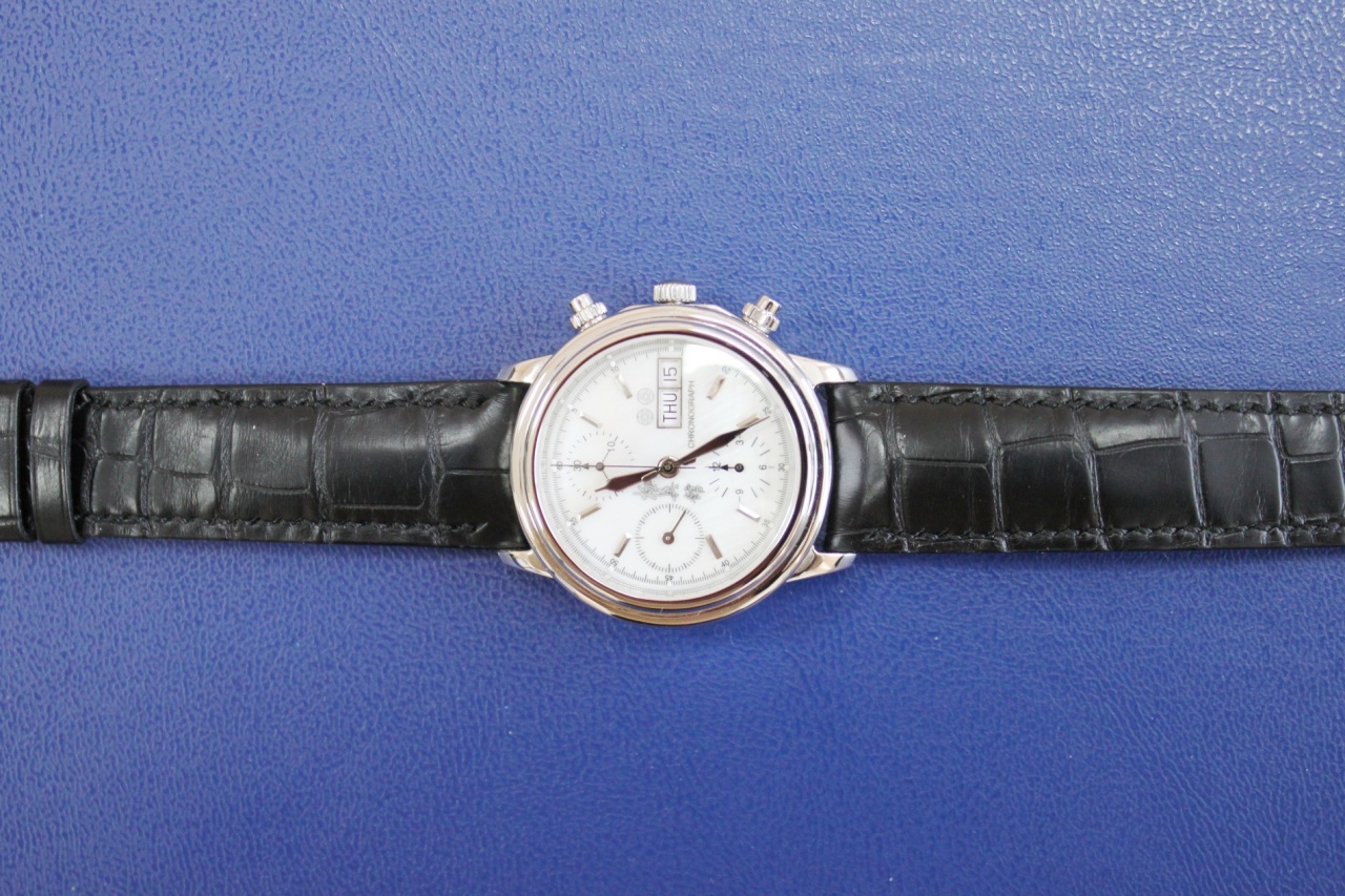 Состояние: новых часов, коробка в комплекте; новый ремень ручной работы из кожи крокодила, сшит на заказ.
