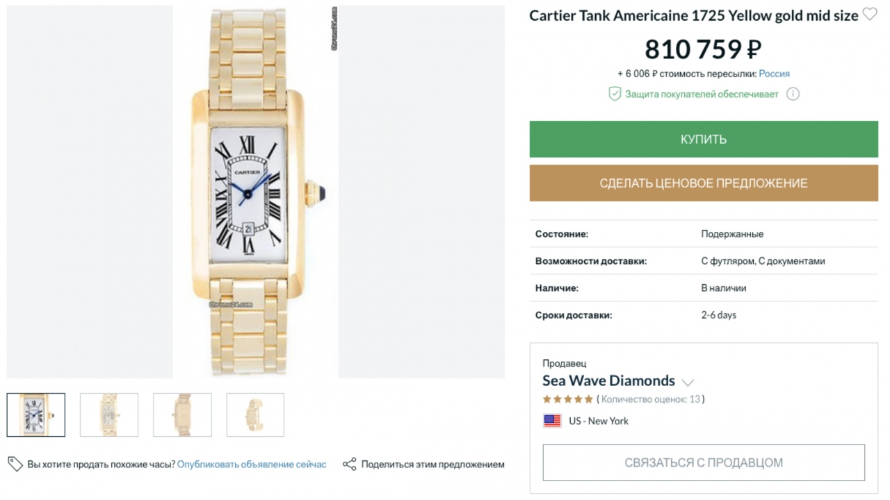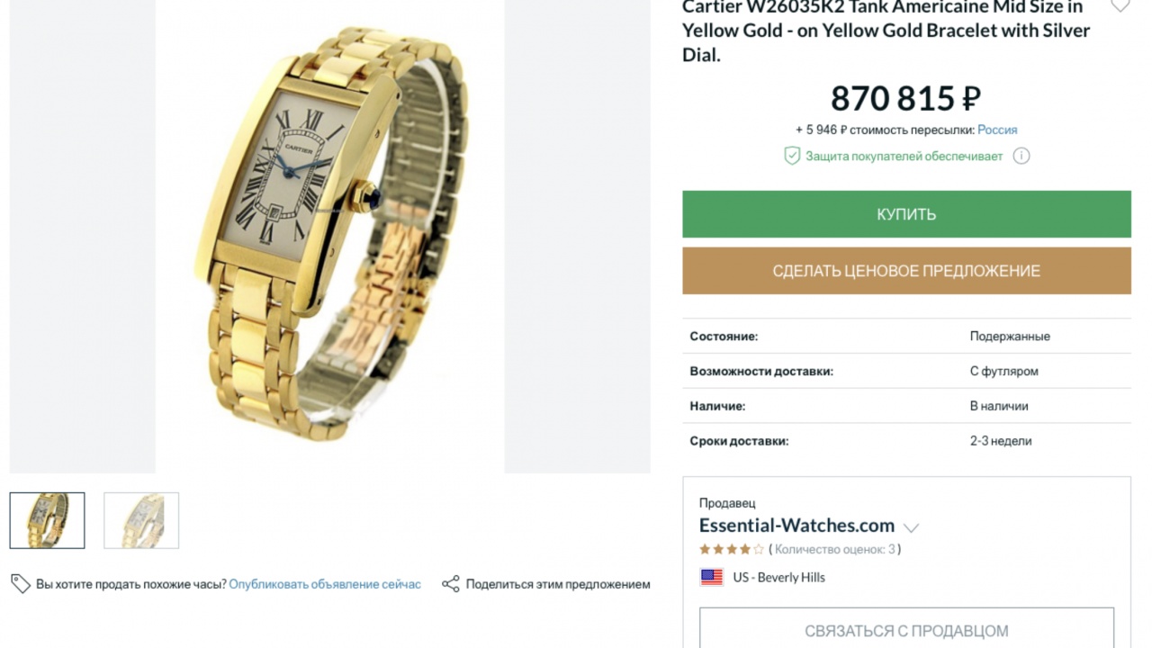 Carter Americaine Tank Yellow Gold механика на браслете Ref. 1725 (W26035K2)