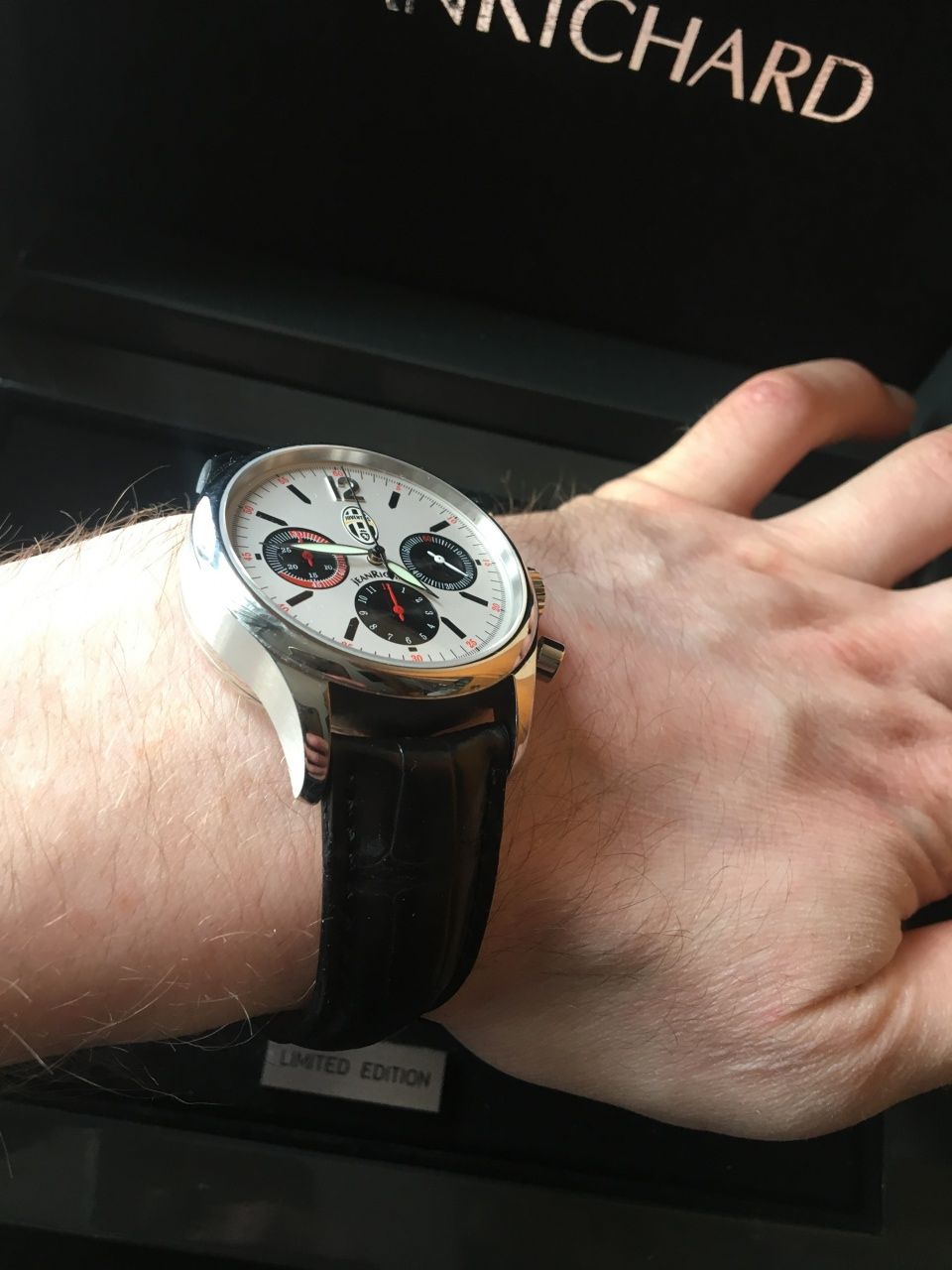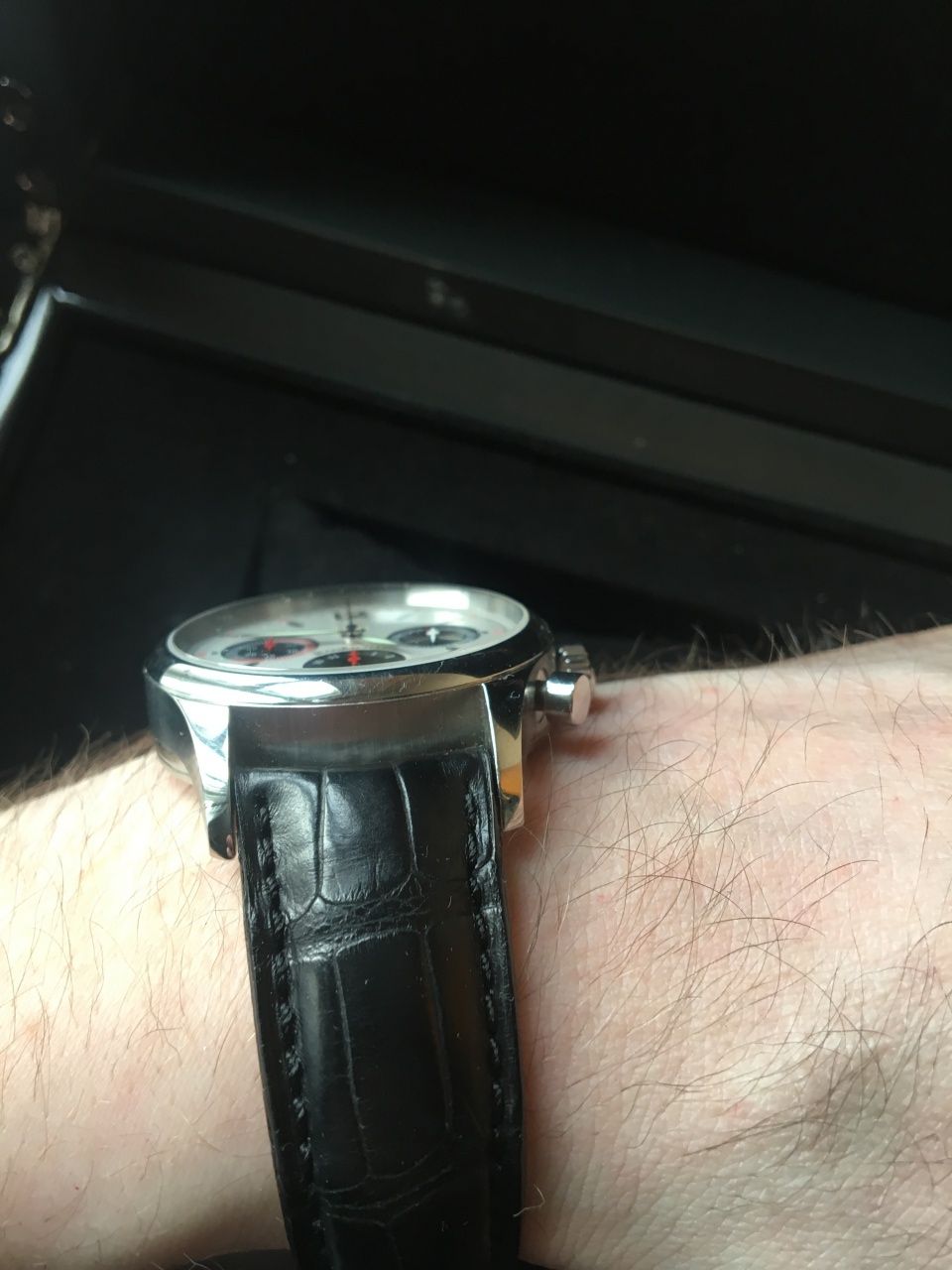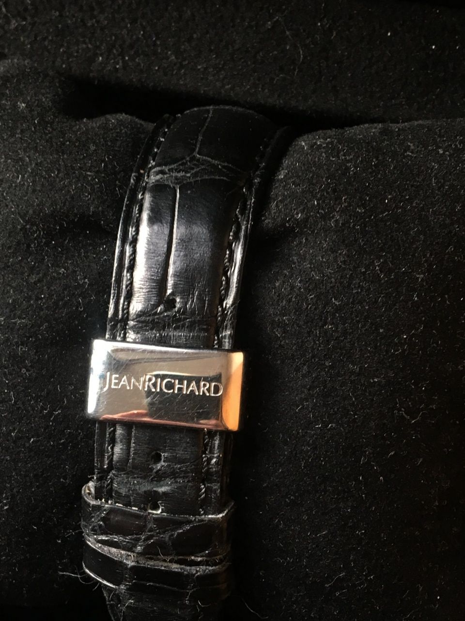 Доброго времени суток всем. Продаю отличный вариант из лимитированной серии от Жан Ришар. Амплитуда 278-280 (см. фото). Часы никогда не обслуживались-всё по заводу. Часы в идеальном состоянии, носились редко по костюм. Ремень из крокодила ( в отличном состоянии). На корпусе нету царапин, забоев и прочих неприятных мелочей, даже микроцарапин. Механизм на 51 камне с мягким спуском Депойз Депа. Номер данных часов в серии 50 из 100 экземпляров. Диаметр 41 мм. Полный комплект документов. С уважением.