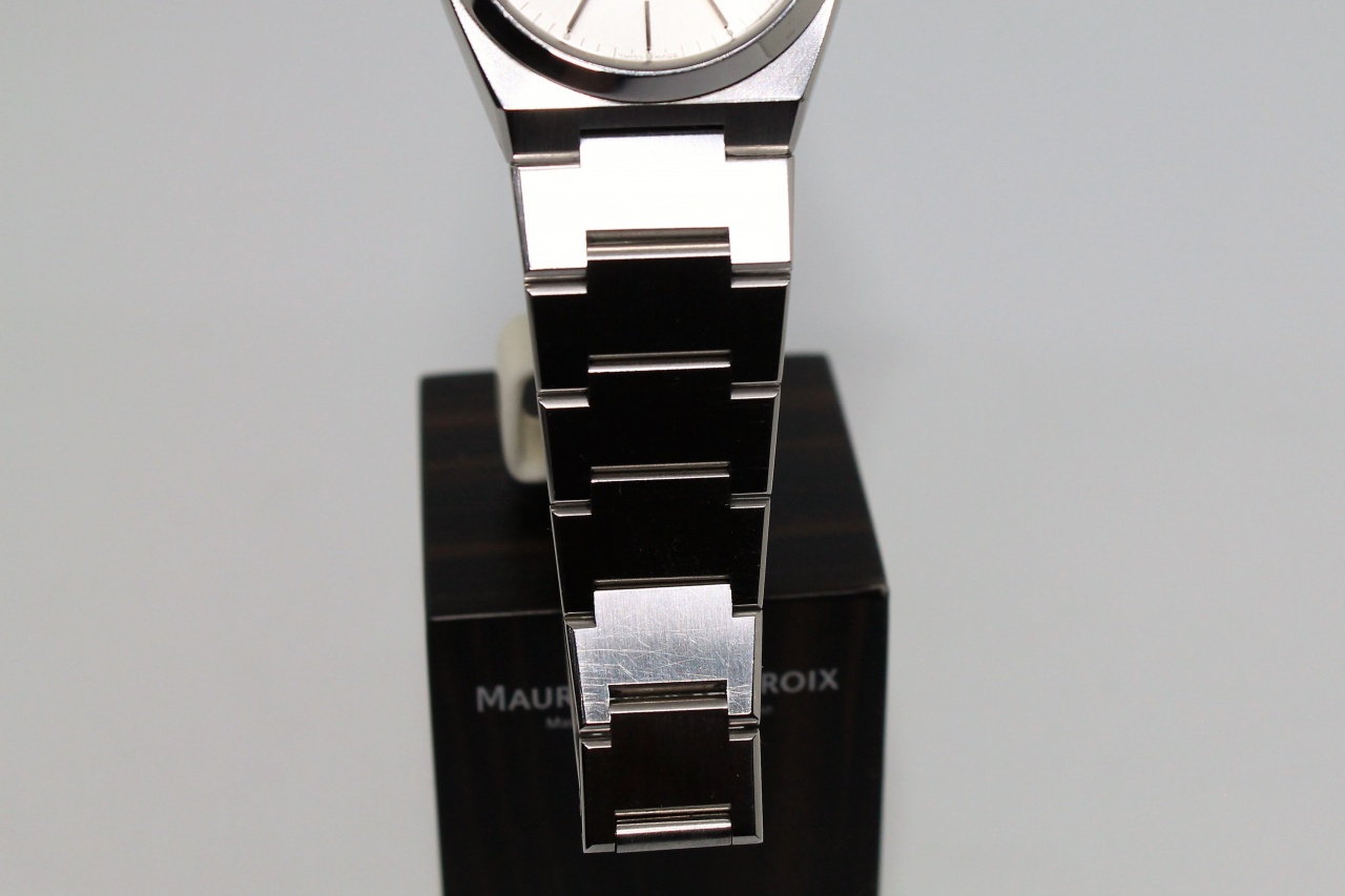 Со слов предыдущего владельца, им часы приобретались на хроно, позиционировались как не полированные / без вмешательств. На мой (и не только мой) "строгий" взгляд, это соответствует действительности - часы не полировались, состояние отличное, можно сказать "коллекционное", браслет на руку до 19 см(возможно чуть больше), все звенья что шли в наличии доставил на браслет. Смотрятся на руке отлично, и гораздо крупнее заявленного размера из-за соотв. формы корпуса, браслета...