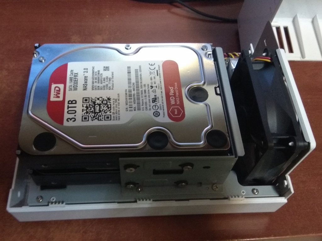 Комплект приобретен в апреле 2016 года за более чем 34000 рублей (чеки о покупке в наличии). Сетевое хранилище использовалось в качестве торрент качалки и мультимедиа сервера для домашнего кинотеатра. После продажи домашнего кинотеатра NAS был отключен и убран в долгий ящик.