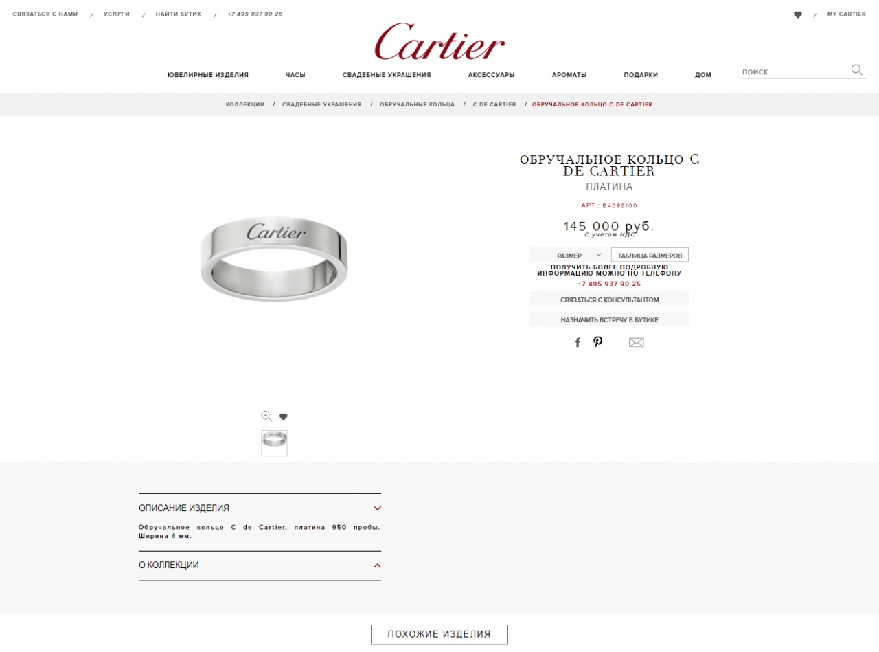 Кольцо Cartier Gravee platinum 950 пробы