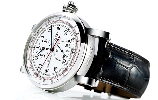 Chronoswiss: рант и нижняя часть состоящего из трех частей корпуса украшены «монетным» рифлением, перемычки для ремешка завинчены, для установки стрелки и завода служит большая заводная головка-луковица, а часовой механизм открыт для обозрения сквозь сапфировое стекло в задней крышке. Для нашего соревнования хронометров