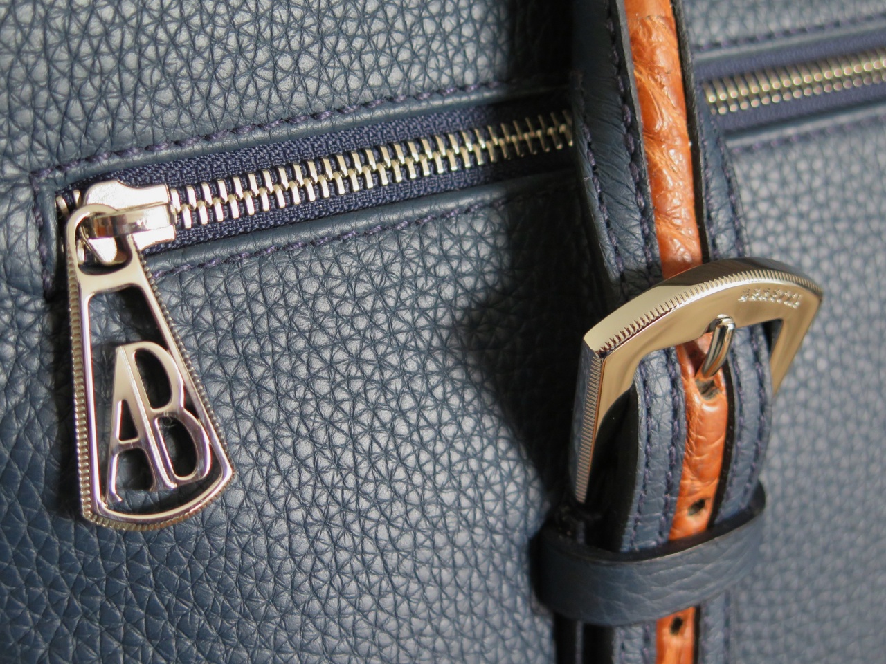 Уникальной особенностью портфеля является его "бескаркасная" конструкция, обеспечивающая гибкость и мягкость портфеля, и увеличивающая при необходимости его объём. Изготовлен из 100% буйволиной кожи высочайшего качества выделки, окрашенной в синий цвет.