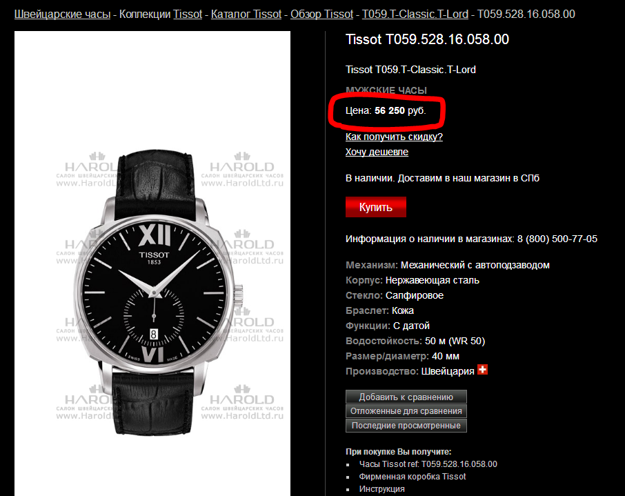 TISSOT T-Lord Small second T0595281605800. Черный цифер / Черный ремешок / ETA 2895-2 / d=40mm - Часовой форум Watch.ru