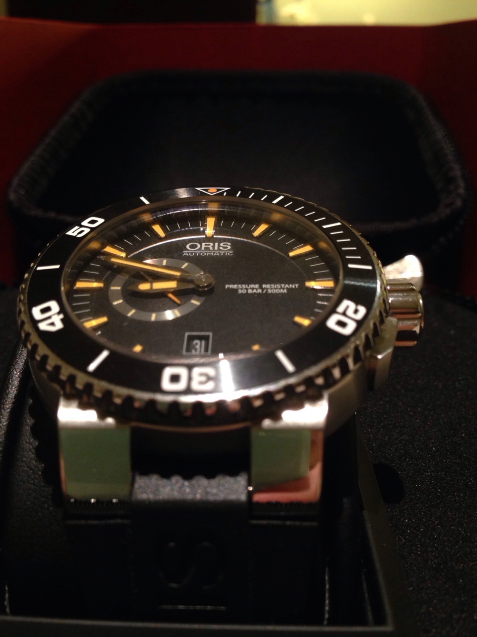 http://forum.watch.ru/showthread.php?t=242723 и сегодня у меня новенький Oris Aquis Small Second Date на руке. С радостью представляю вам этого красавца