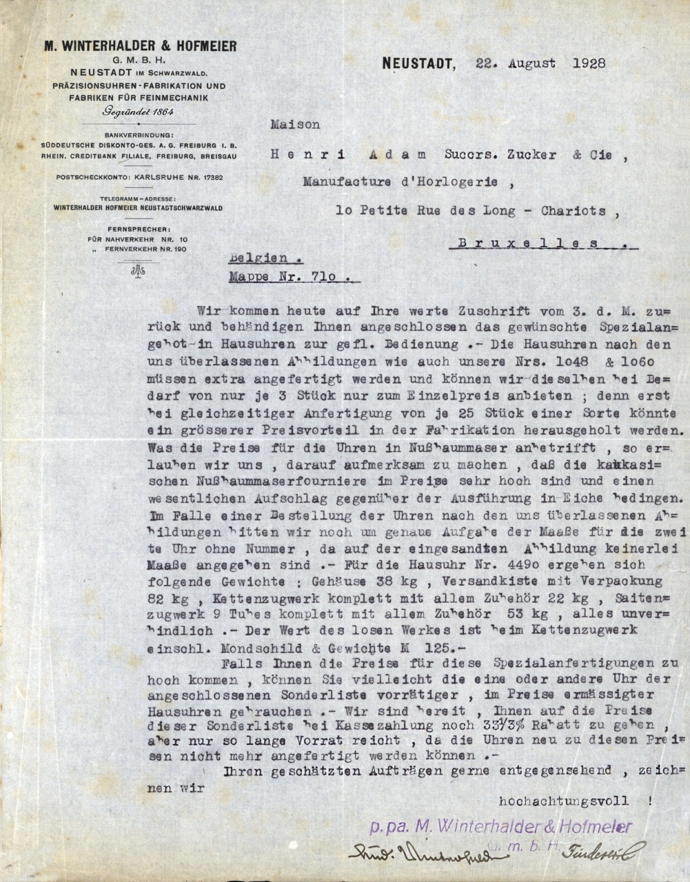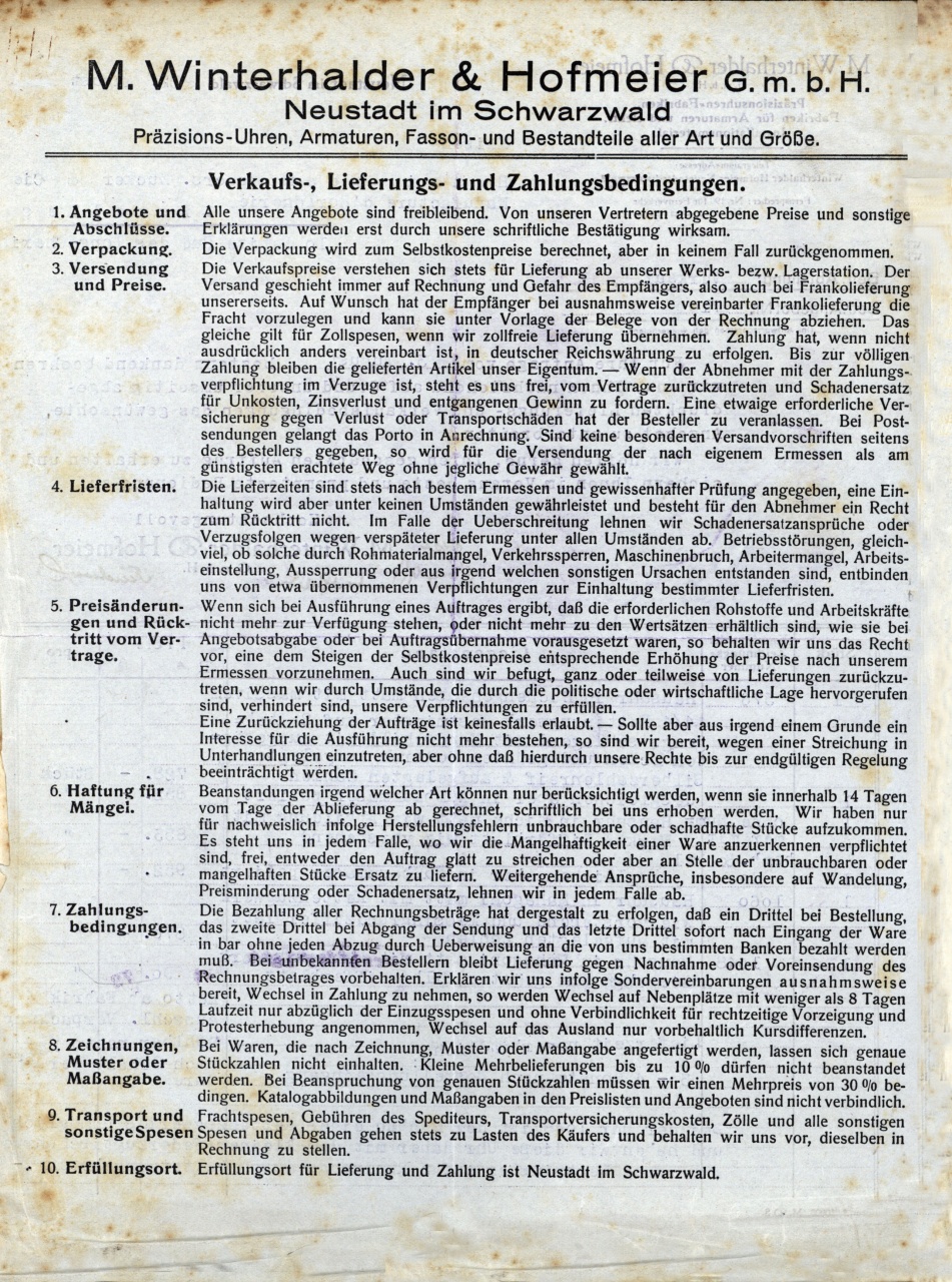 Каталоги документы Winterhalder & Hofmeier 1928 год