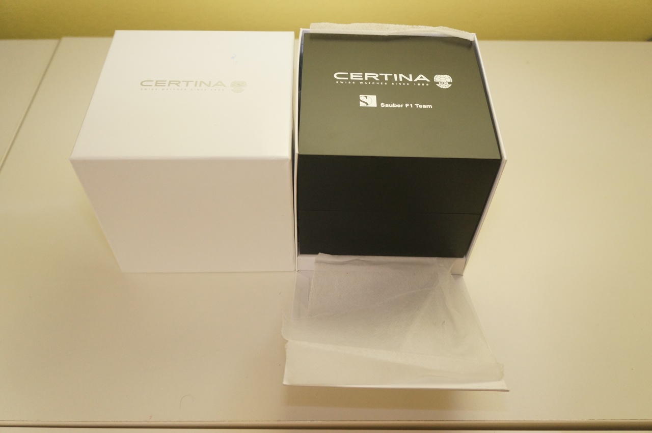 Часы выпущены в честь 10-летия сотрудничества компании Certina с командой Формулы 1 Sauber. Ограниченный выпуск 2014 экземпляров. Многофункциональный хронограф с счетчиками часов, минут, секунд и 100-х долей секунд, люминесцентное покрытие индексов, часовой и минутной стрелок, индикация даты и вынесенная секундная стрелка на "6" часов, тахиметрическая шкала.
