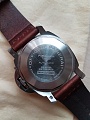 Автоматический механизм, эксклюзивный калибр Panerai OP III, 13¼ линии, 21 камень, ротор с фирменной отделкой PANERAI. Баланс из сплава Glucydur®, 28 800 полуколебаний/час. Противоударное устройство Incabloc®. Запас хода 42 часа. Узор Côtes de Genève на мостах.