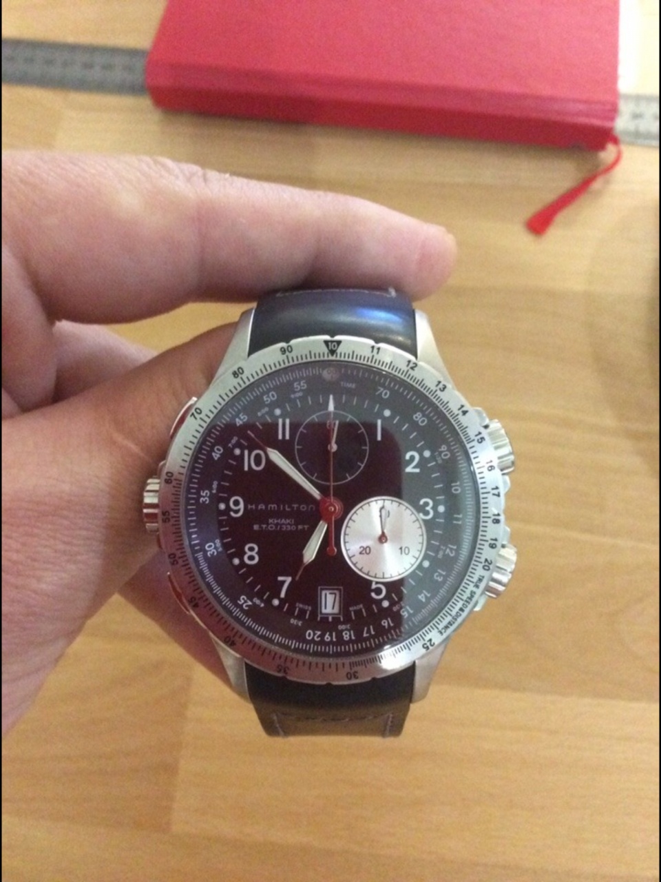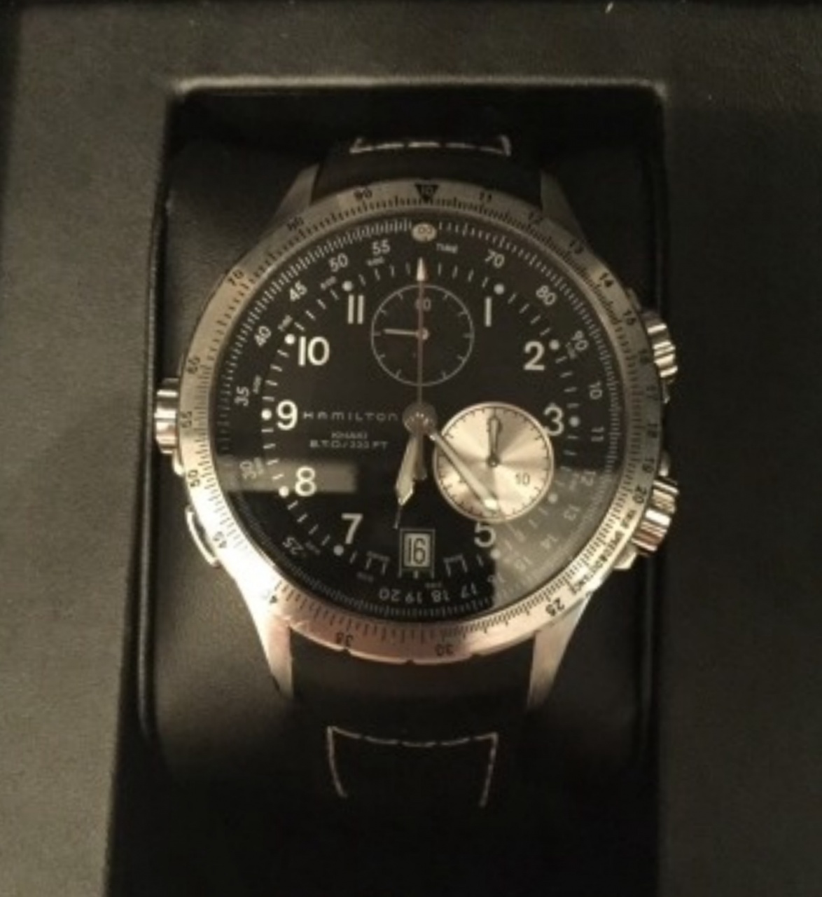 Hamilton Khaki Aviation ETO H77612333 - мужские часы производства Швейцария. Корпус этих часов среднего размера (42 мм.) и выполнен из нержавеющей стали. Модель Khaki Aviation ETO H77612333 имеет сапфировое стекло, полимерный ремешок чёрного цвета, чёрный циферблат. Водоустойчивость: 100 метров. Дополнительные функции и особенности: дата, хронограф, лётные функции. Полный комплект и заводская комплектация Hamilton. Без дефектов, надежная кварцевая машина.