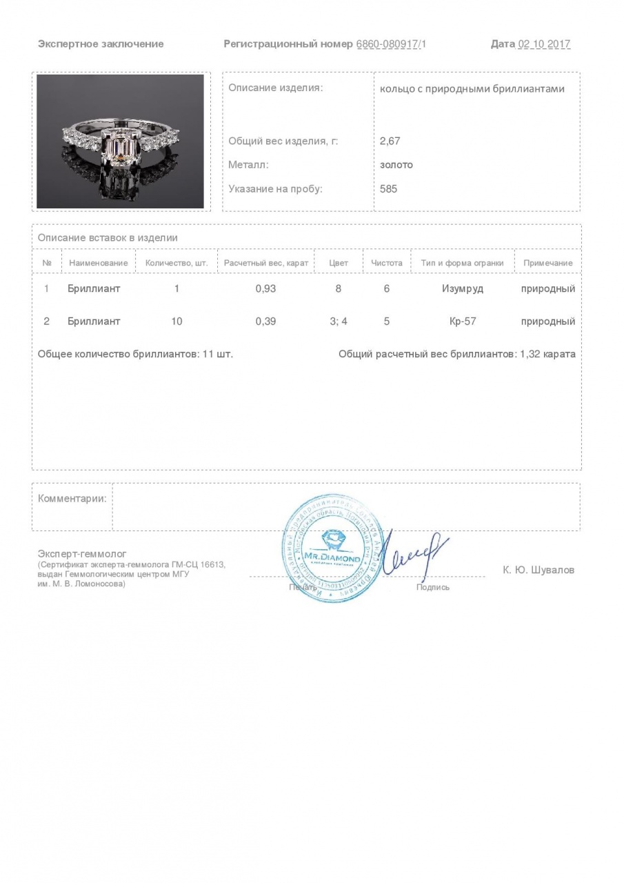 бриллиантовое кольцо, золотое кольцо, кольцо с бриллиантами 1.32ct |