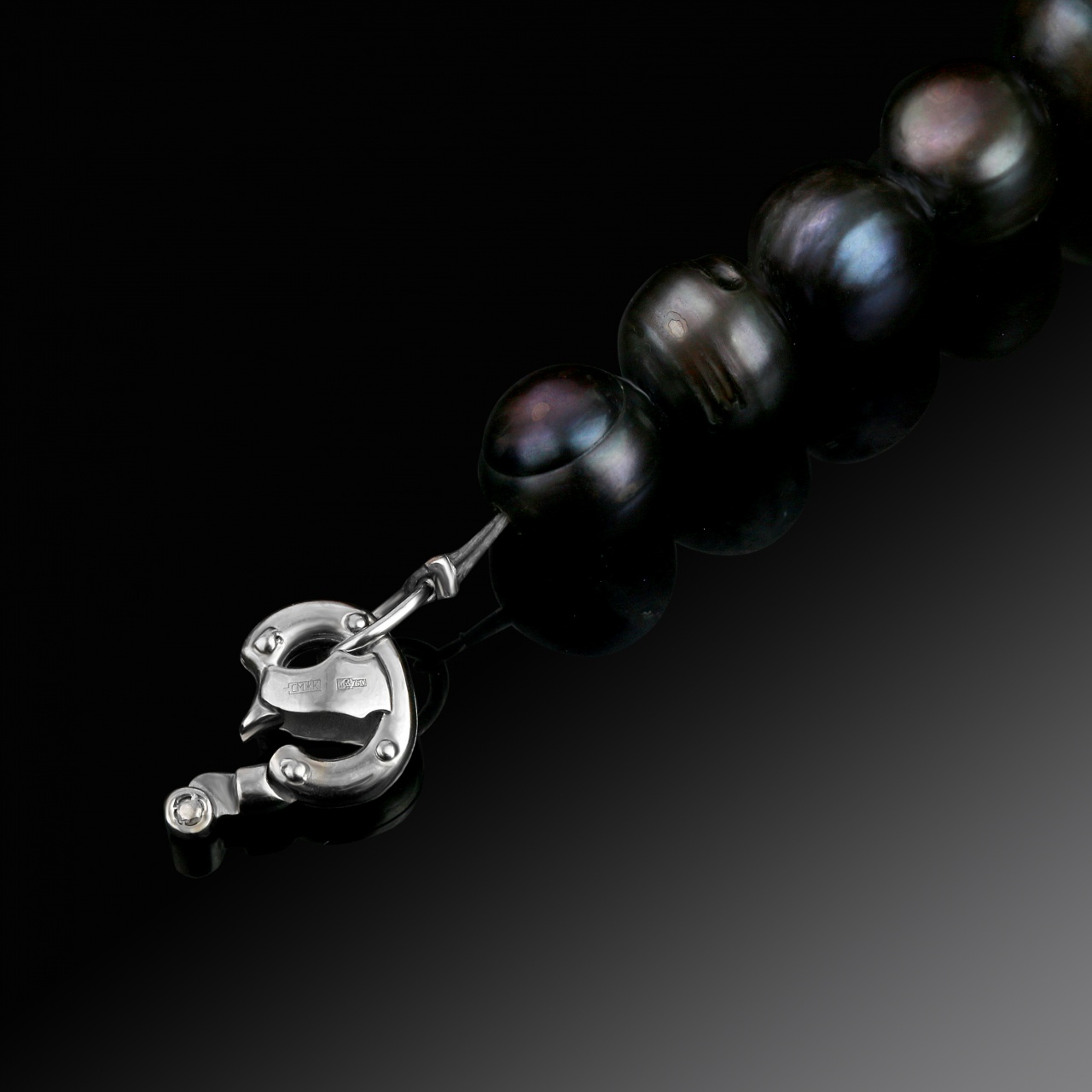 Ожерелье из черного жемчуга с замком из белого золота (сертификат МГЦ)