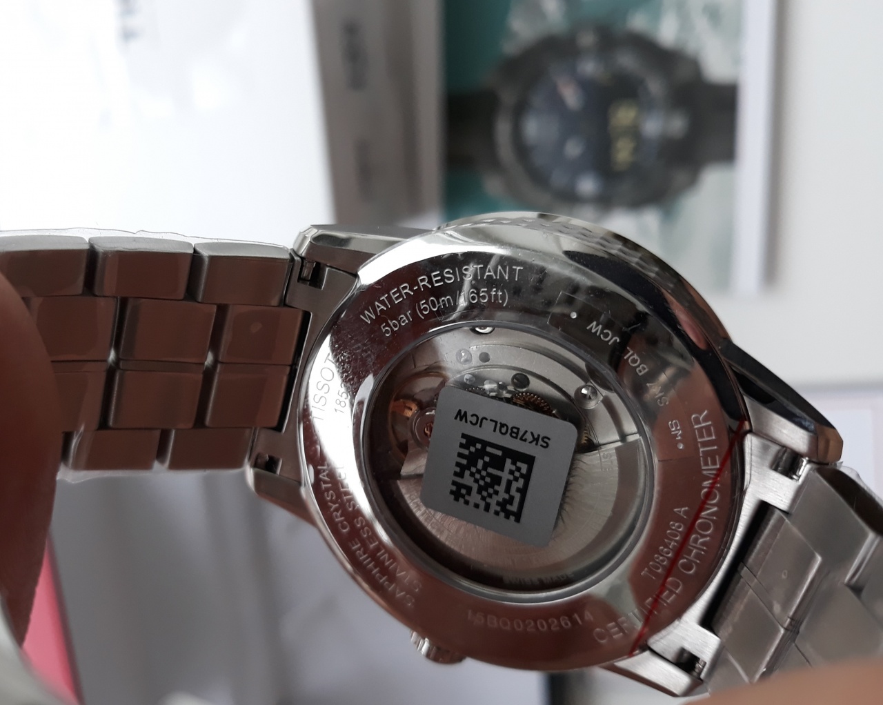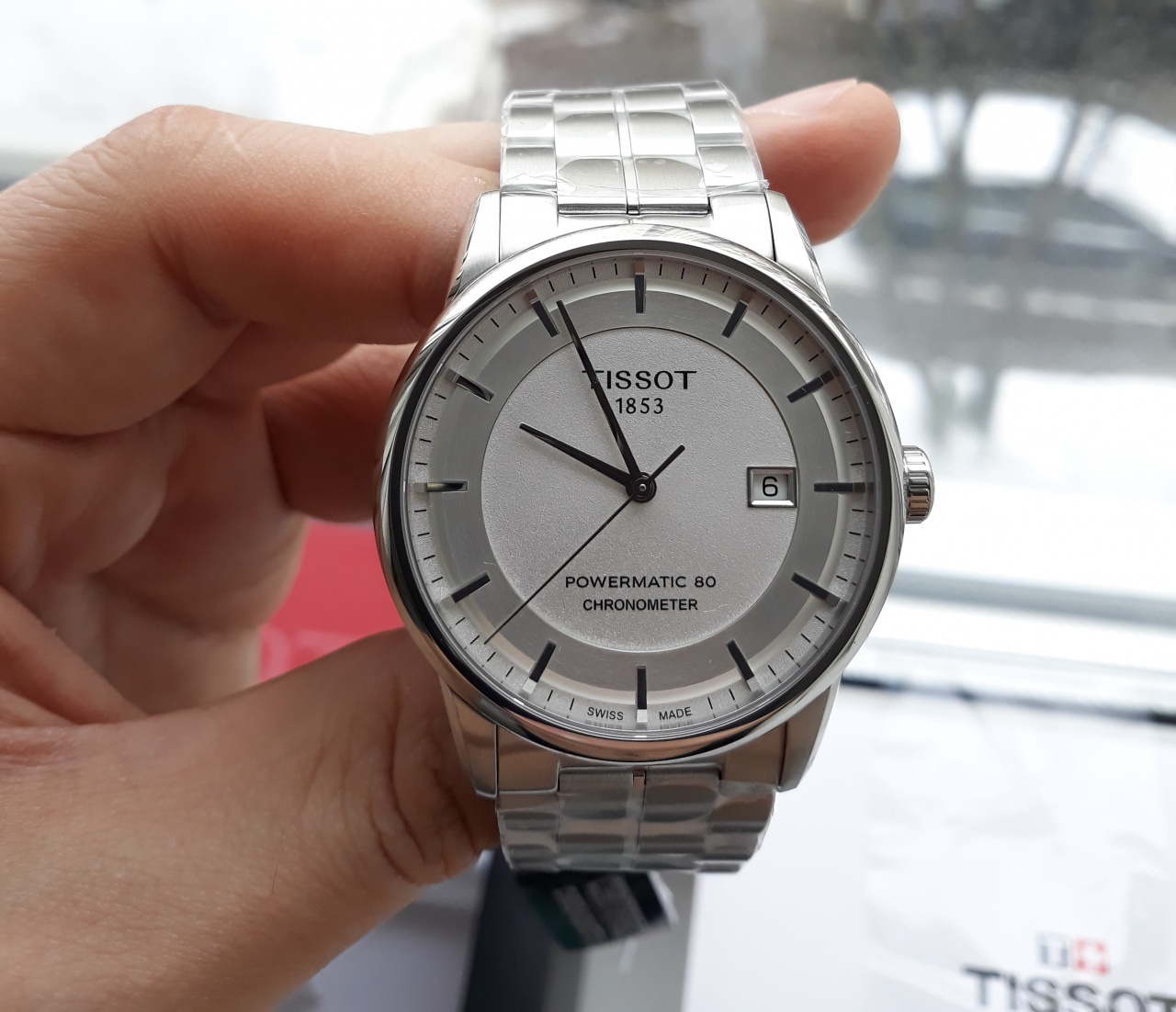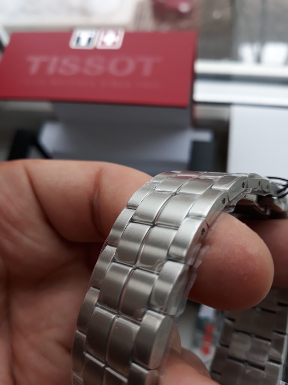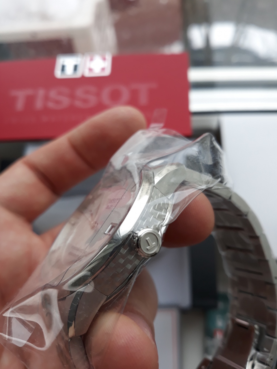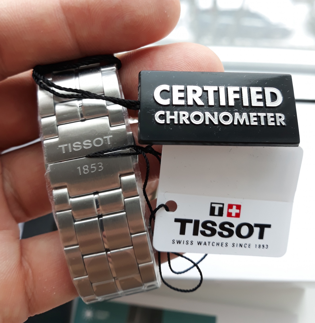 Отделка корпуса и браслета великолепна, привлекают внимание также фирменные атрибуты TISSOT на заводной головке и браслете. Cеребрянный циферблат с метками выглядит строго и по-костюмному.