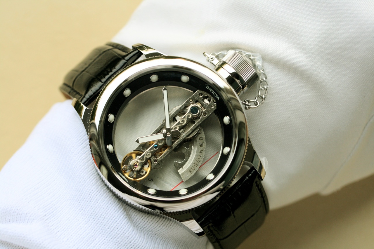[скелетон-дайвер] INVICTA RUSSIAN DIVER ** черная кожа ** скелетон в стиле CORUM BRIDGE ** -85%