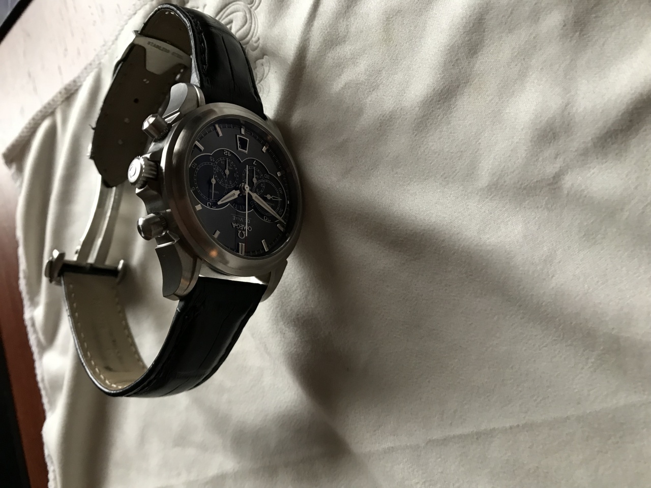 Часы приобретены в сентябре 2014 (бутик Tourbillon г. Москва). Корпус из нержавеющей стали, диаметром 41 мм. Коаксиальный механизм 3890. Задняя сторона корпуса с изображением Хроноса, греческого Бога времени.