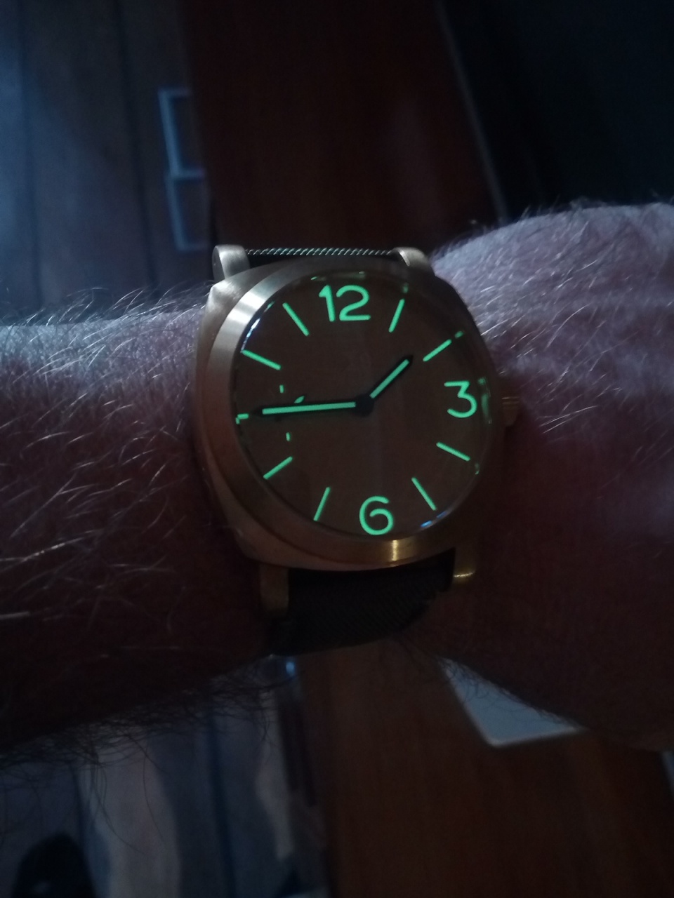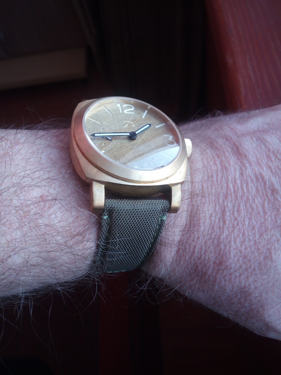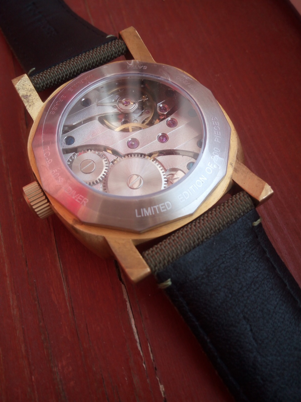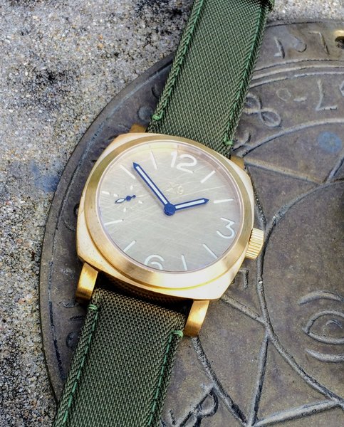 Толстый циферблат из латуни толщиной 0,8 мм. типа "сендвич", со временем тоже будет патинироваться, как и корпус.