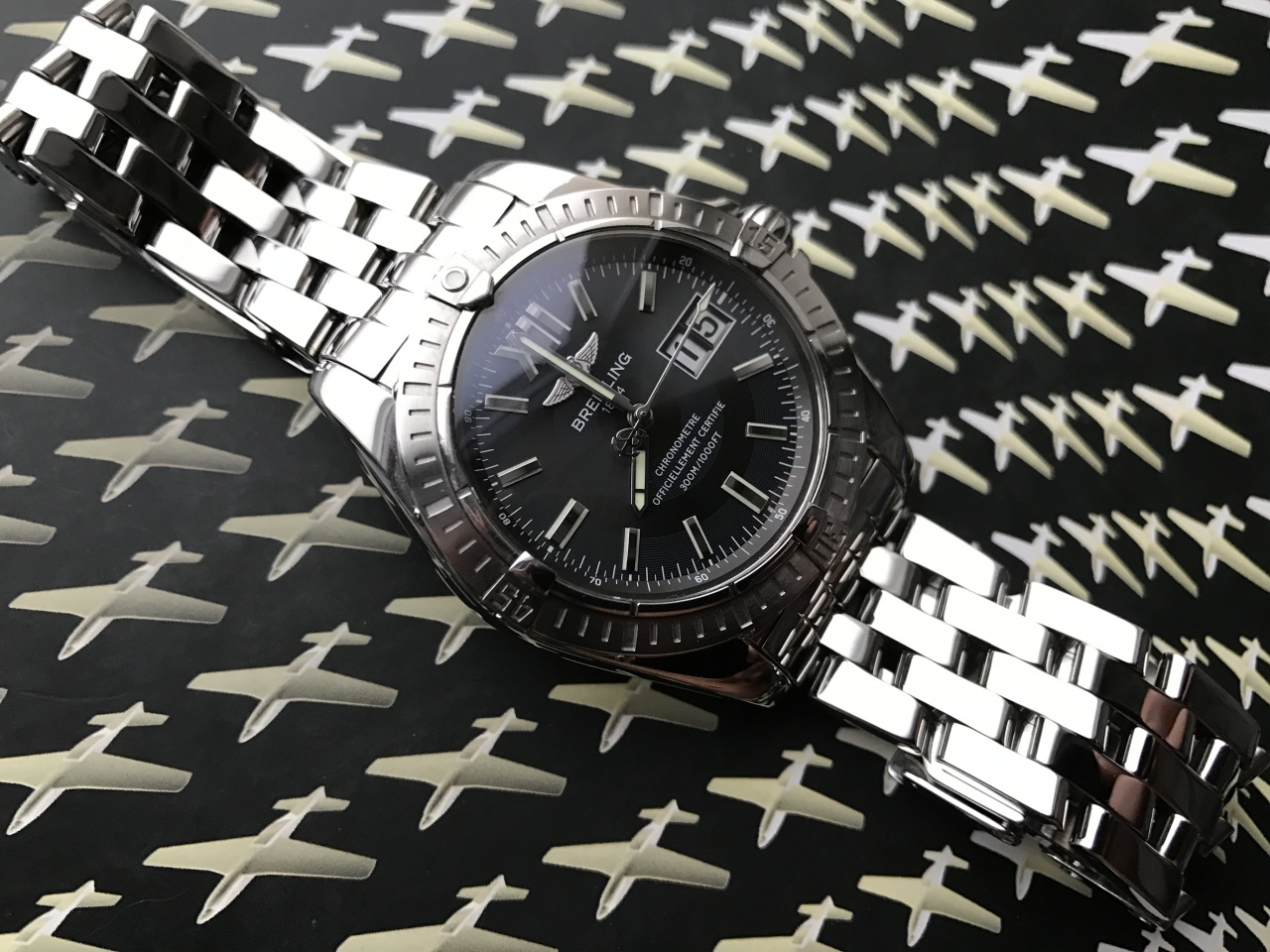 Уважаемые форумчане, в продаже неповторимые олдскульные Breitling Cockpit. Великолепный гильошированный циферблат, большая дата, многосоставной безель, накладные метки и эмблема... в оптимальном размере 41 мм и на роскошнейшем и удобнейшем браслете. Часы в отличном состоянии, механизм обслужен, сделана легкая освежающая полировка.
