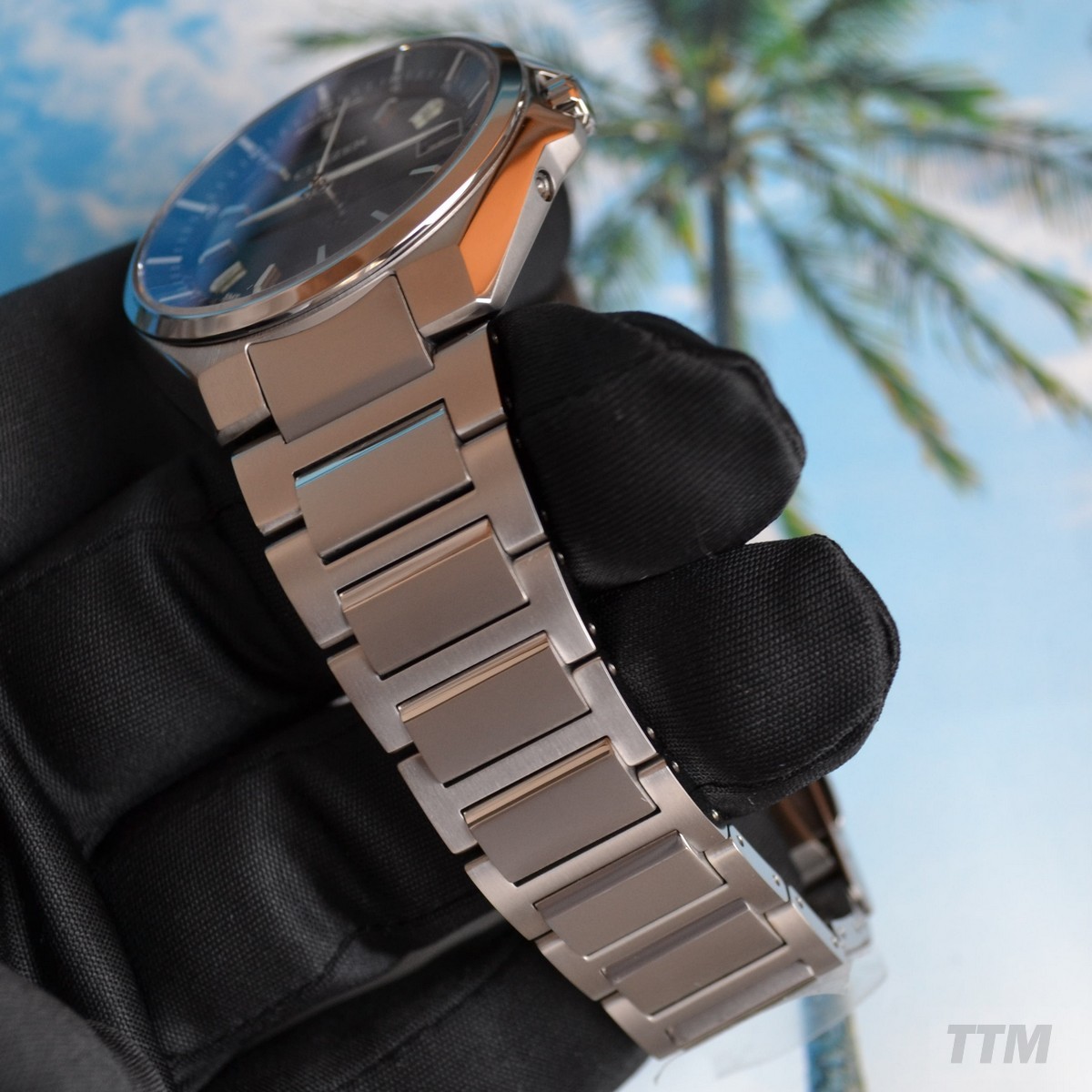 Особенностью модели является темно синий цвет циферблата, перенесенные